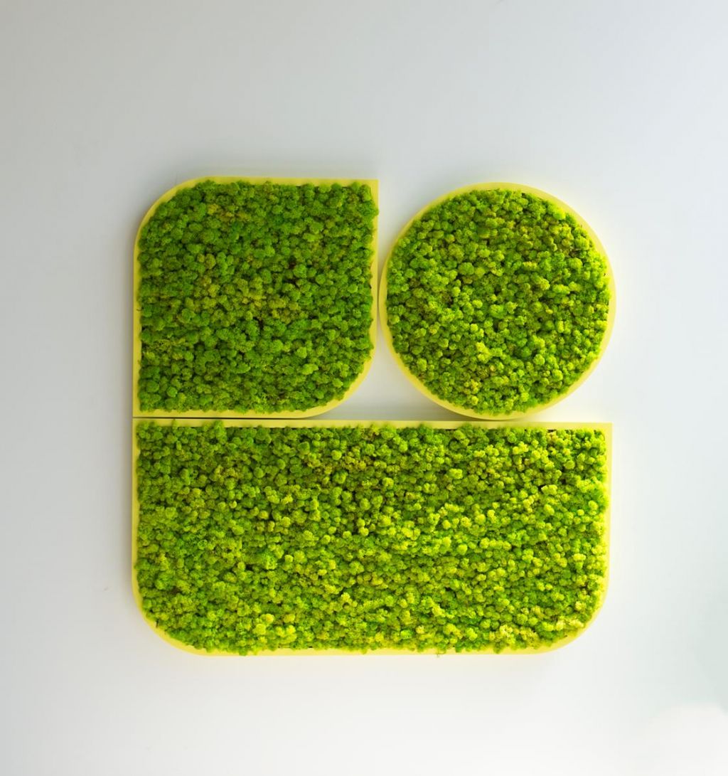 La gamme Buzzimood est composée de panneaux géométriques divers, caractérisés par un cadre métallique renfermant du lichen des rennes. Les panneaux, dont le principal atout charme est évidemment le lichen des rennes, se combinent et s’assemblent au gré des envies. Comme de nombreuses autres créations Buzzispace, Buzzimood présente une affinité acoustique.