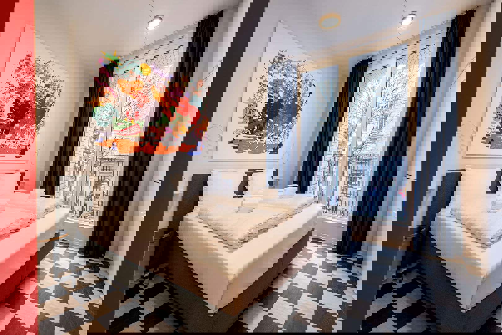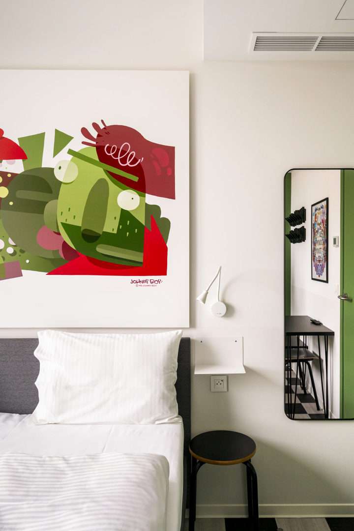 Un environnement de type hostel impose des exigences spécifiques. Les espaces sont utilisés intensivement au quotidien et doivent être à la fois faciles d’entretien, robustes et esthétiquement attractifs. En parallèle, les ambitions en matière de design étaient élevées : une palette de couleurs marquée, des accents forts et une atmosphère reconnaissable devaient renforcer le caractère de BX. Downtown Hostel.