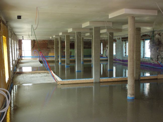 La chape liquide renforcée de fibres de Calmix a une conductivité thermique supérieure de 60 % pour le chauffage par le sol et peut être carrelée après 2 jours.