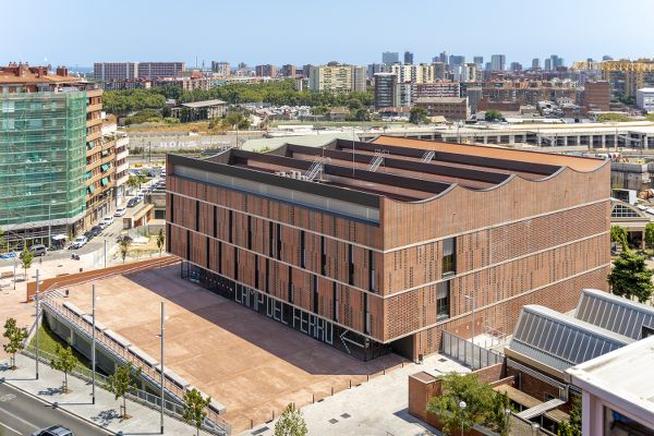 Le toit répond à la même logique de conception : soutenu par des fermes métalliques apparentes de 35 mètres de portée, il est complété par une couverture à voûtes inversées formant des pointes courtes et espacées, dirigées vers le haut. Il s’intègre parfaitement dans le contexte et rappelle les usines voisines. « Sur le toit, nous avons également 50 kW d’énergie photovoltaïque, rappelle Albert Salazar, ce qui signifie que durant les mois d’été il fournira de l’énergie positive aux édifices voisins ». Cependant, tout l’édifice vise la durabilité et la réduction de la consommation d’énergie. L’efficience énergétique de l’édifice commence en fait avec l’approche volumétrique du projet. La volonté de l’enfouir partiellement, également pour des raisons d’impact visuel, a contribué à augmenter son inertie thermique et le gain énergétique. La protection du soleil, la ventilation, l’éclairage naturel ou l’utilisation des énergies renouvelables réduisent également la demande énergétique pour son fonctionnement.