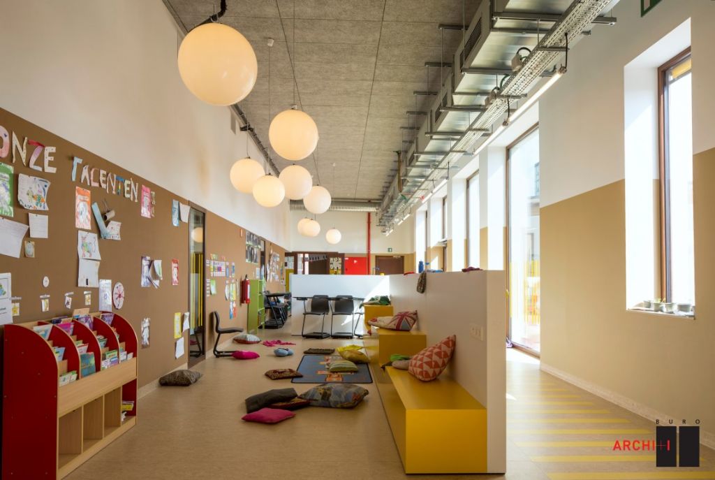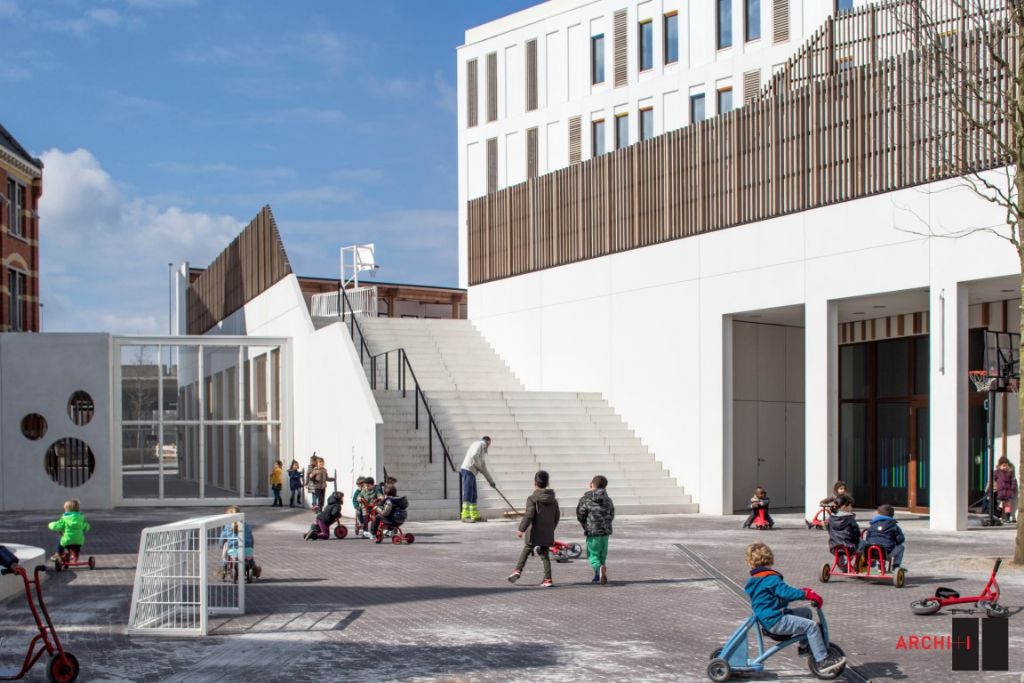 Il s’agit d’un nouveau centre scolaire, se composant d’une école maternelle et primaire, ainsi que d’une école secondaire. Le site de construction de ce nouveau projet se situe à Antwerpen-Noord, le long de la rue Hardenvoort, à la lisière du parc Spoor Noord. 450 élèves ont investi les lieux à la rentrée scolaire 2015. Le projet, conçu par BURO II & ARCHI+I en collaboration avec Ingenium [techniques et conseiller constuction passive], TA Thiers - Dujardin [architecte paysagiste] et De Fonseca [acoustique], est sélectionné pour les World Architecture Festival awards 2016.
