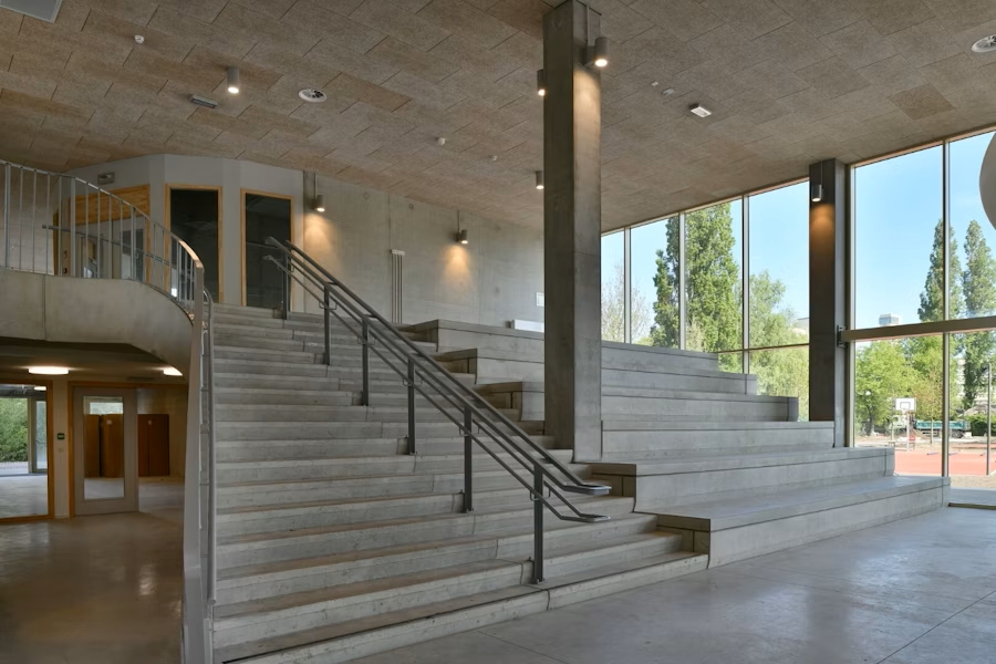 Ce qui unit les trois bureaux d’architectes, c’est leur compréhension fine des besoins des élèves d’aujourd’hui. La plupart des jeunes du Ceria viennent de la zone du canal, où l’espace libre se fait rare. La nouvelle campus leur offre précisément cela : de l’air, de la lumière, des vues dégagées et des espaces pour jouer. Les larges couloirs deviennent des lieux de rencontre, les escaliers et terrasses encouragent le mouvement et la convivialité.