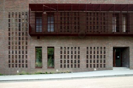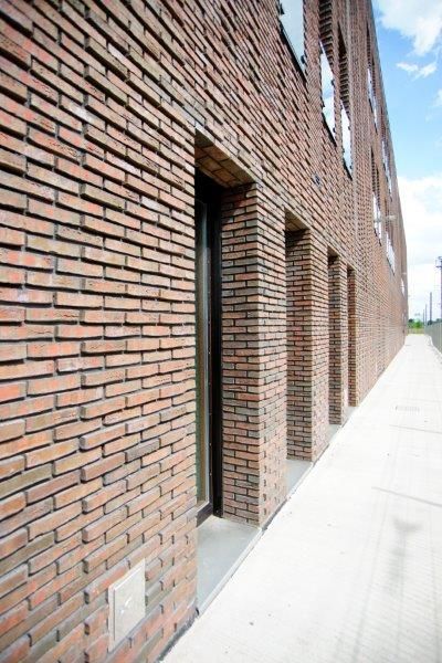 Pas question d’architecture démonstrative. La fonction même des bâtiments demandait, au contraire, une architecture sobre, soignée et réfléchie, … une conception durable et ‘raisonnée’ ! Le résultat en est une volumétrie assez monolithique où la maçonnerie de briques est mise à l’honneur.