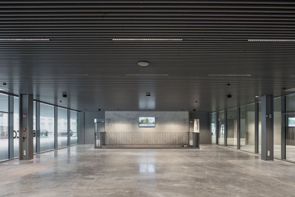 Le plafond Multipanel de Hunter Douglas Architectural fut un élément logique, selon Soors. ‘’Au final, nous avons opté pour un plafond linéaire car il donne une direction subtile à la pièce. L’intégration avec l’éclairage LED choisi pourrait également être conçue avec élégance avec ce plafond. De plus, en utilisant des lignes et en n’optant pas -par exemple- pour un plafond grillagé, nous avons pu continuer l’esthétique du bâtiment. Les lignes du plafond pointent dans la direction de la façade du bâtiment : le point central du design.’’