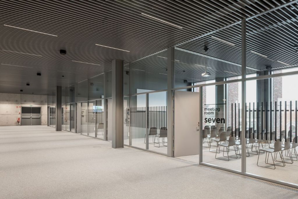 En plus du hall d’exposition, il y a des salles de réunion avec huit salles de réunion, un espace de restauration de 650 mètres carrés et une terrasse adjacente avec vue sur les tours de Bruges. L’auditorium divisible avec tribune rétractable et espace pour 500 visiteurs a également l’air moderne. Il y a aussi un espace souterrain pour 124 voitures et 200 vélos.