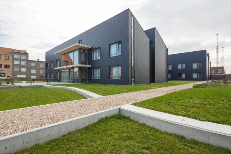 La commune côtière de Middelkerke s'est enrichie d'un nouveau centre résidentiel de soins. La réalisation en est signée par les bureaux Vandenbussche-Dejonghe et MSDN architecten. Le centre de soins comprend trois parties : des unités d'habitation assistée, des chambres individuelles de séjour et de soins et un volume de liaison. Eternit a fourni les ardoises en fibres-ciment destinées au bardage des façades de la partie abritant les chambres individuelles.