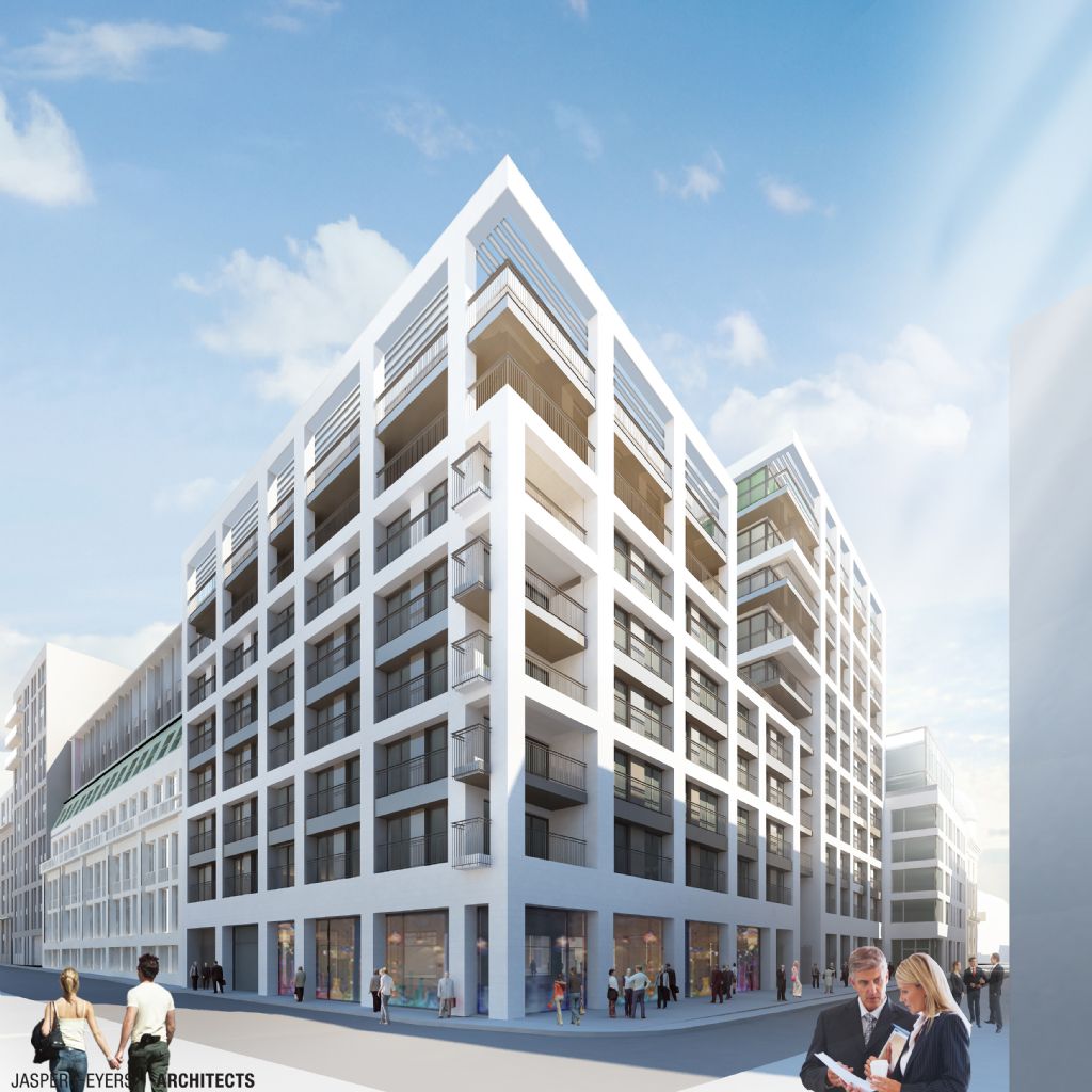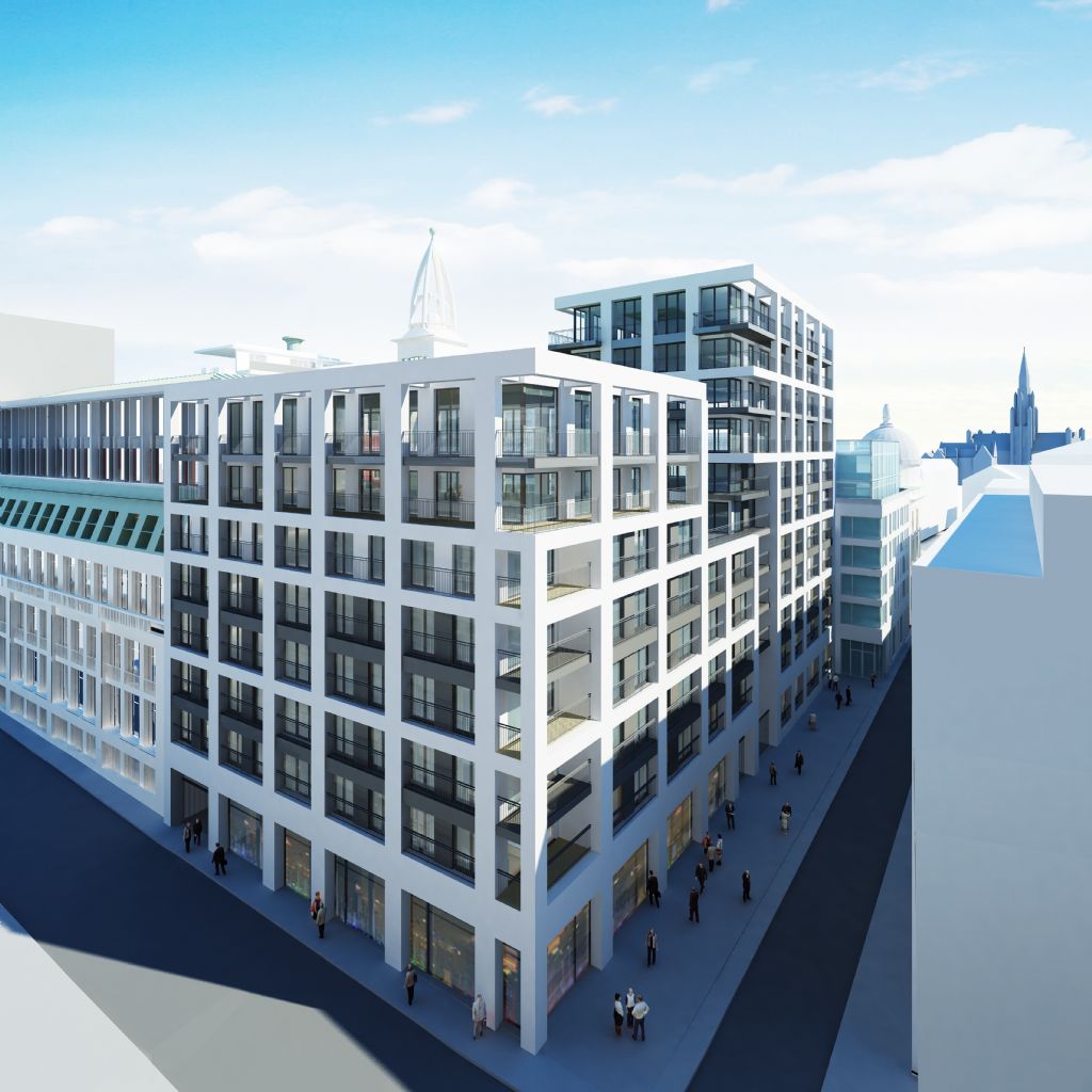 Le bâtiment en fer à cheval offre quelque 50.000 m² de logements, chambres d'étudiants, commerces et bureaux et vise une classe aisée d'expatriés, de fonctionnaires européens et d'investisseurs. La surface de 75.000 m² qu'occupait l'ancien bâtiment a été réduite à 50.000 m² et se caractérise par des volumes ouverts et une relative simplicité géométrique. La forme originelle en U à l'avant du bâtiment, qui évoque les balcons et loges de grandes salles d'opéra, a été conservée. La fonction résidentielle y a été organisée le long de la rue du Fossé aux Loups. A l'arrière, se concentrent les bureaux à la rue des Boiteux.