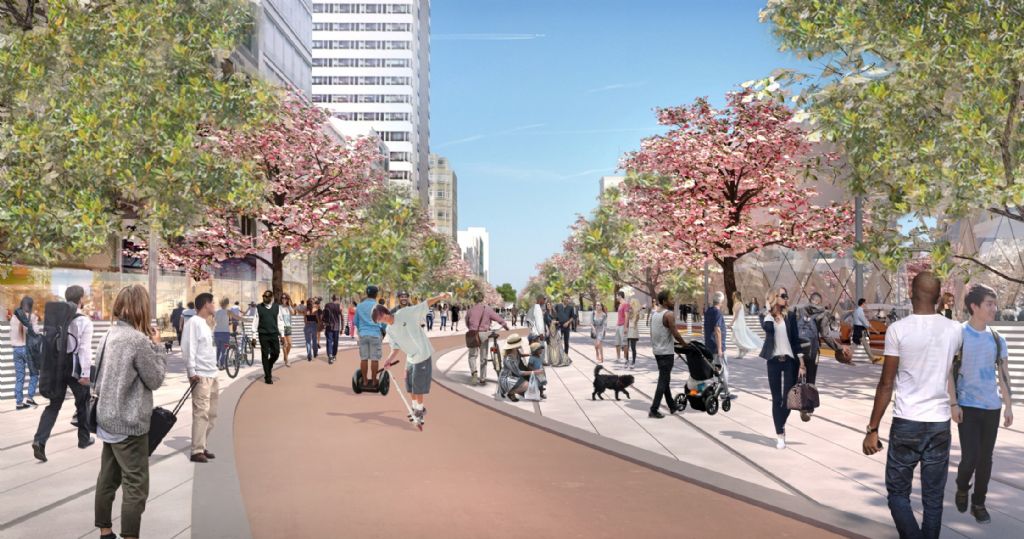 Le concept défendu dans ce nouveau projet se base sur la fluidification du trafic dans un cadre plus sain, plus vert. L’accent est mis sur un véritable partage de la voirie par tous ses usagers (piétons, cyclistes, automobilistes). Une circulation sinusoïdale rythme et structure le paysage dans lequel les piétons ont priorité sur les modes de transport.