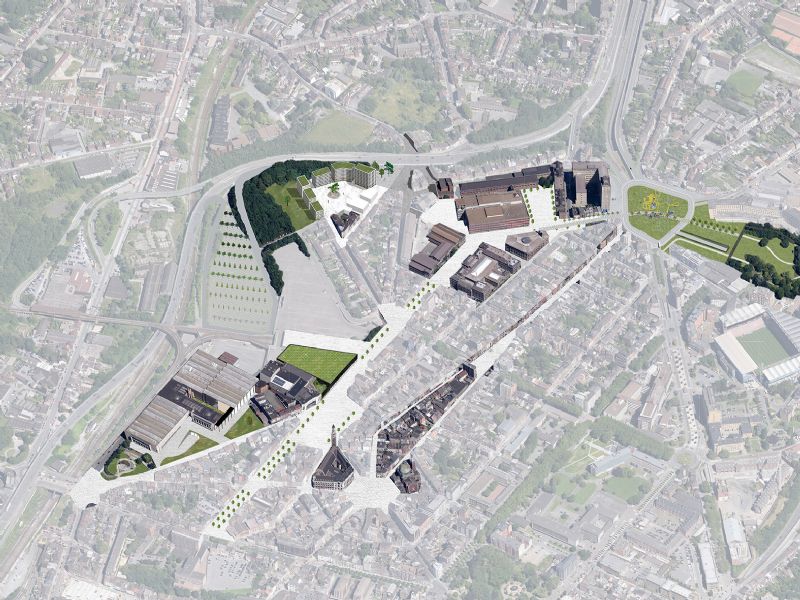 L’équipe de Bas Smets envisage de renforcer la lecture des éléments en place. Ainsi, « ville/places », « boulevards/alignements » et « équipements publics/stationnement » seront respectivement traités dans une globalité à l’échelle de la ville. Le but est de tisser les liens entre le centre-ville et les deux futurs projets de centre universitaire et de pôle événementiel « Congrès – Expo – Beaux-Arts ». Les interventions suivent 2 axes majeurs : la mobilité douce et l’esthétique urbaine. L’aménagement, l’embellissement, et surtout la végétalisation des places et voiries créeront un véritable réseau d’espaces publics centrés sur le piéton. Le projet est en cours de réflexion en vue du dépôt de dossier de permis d’urbanisme, prévu dans les mois qui viennent. Un nouveau plan de mobilité et un plan de mise en lumière sont étudiés en parallèle pour assurer la faisabilité et la mise en valeur des propositions de Bas Smets.