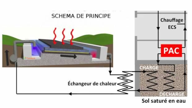 Le Cerema et l’école d’application aux métiers des travaux publics (EATP) ont développé sur le campus de l’EATP à Egletons (Corrèze), un démonstrateur de chaussée chauffante et récupératrice d’énergie solaire. Grâce à la circulation d’un fluide caloporteur, cette route emmagasine la chaleur dans le sol durant l’été et la restitue durant l’hiver via des pompes à chaleur géothermiques. Des sondages ont permis d’évaluer la capacité du sol rocheux à se recharger en chaleur l’été afin d’apporter en hiver l’énergie nécessaire à la chaussée pour qu’elle ne gèle pas.