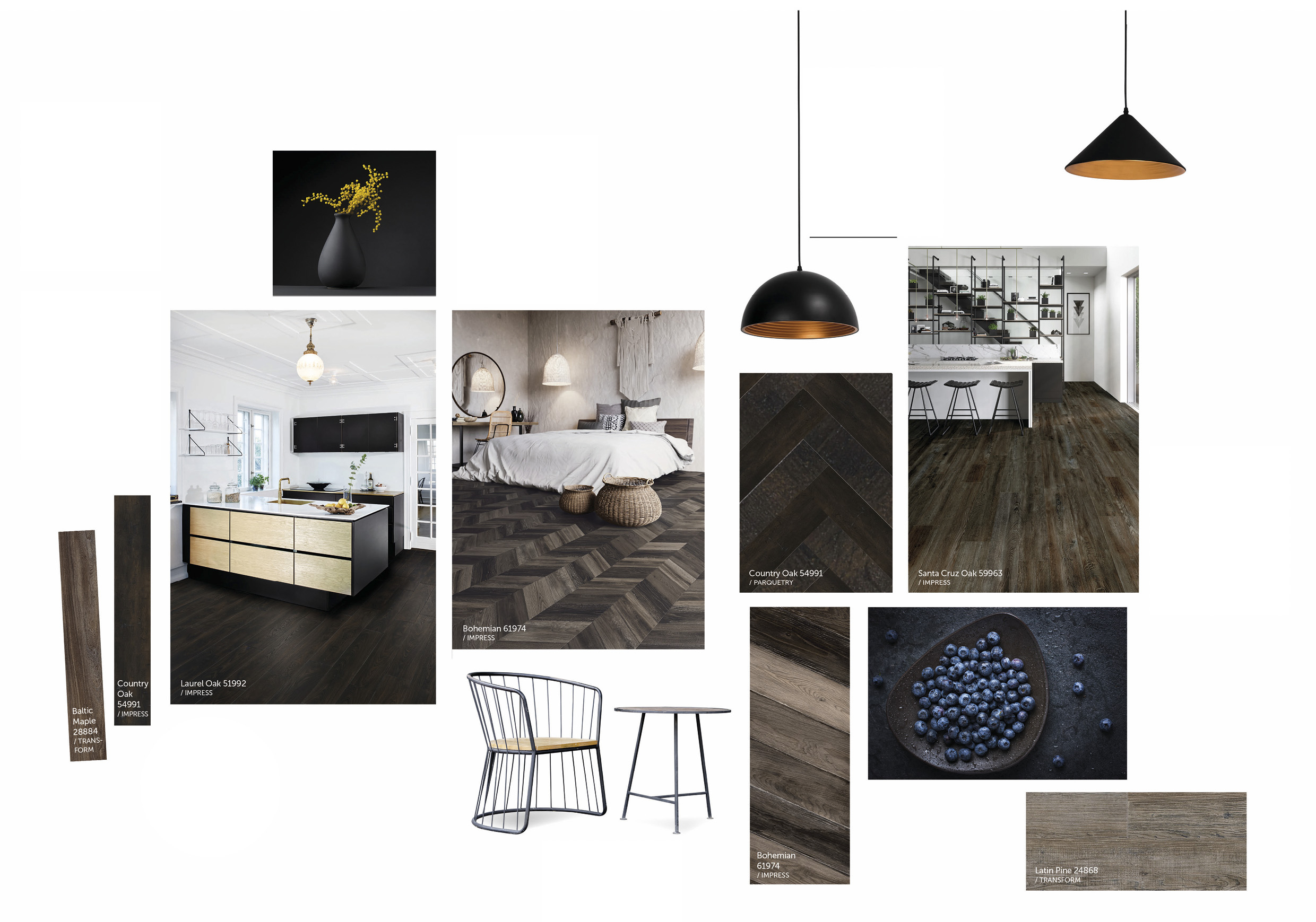 Les intérieurs clairs ont certes la cote mais cette année, les intérieurs sombres sont également dans les tendances pour 2019. Ces derniers contribuent à vous donner un sentiment d'intimité et de sécurité chez vous. Plus surprenant encore, vous pouvez rendre une pièce plus claire en trouvant le juste équilibre entre les éléments sombres et clairs et ainsi jouer intelligemment avec les contrastes. Avec ses vinyles de luxe foncés, Moduleo sait mieux que personne que la beauté se cache parfois dans l'ombre. Chaque design est richement détaillé et les nuances de couleurs foncées accentuent joliment les fibres et les nœuds. Le caractère du bois est ainsi parfaitement mis en valeur dans un sol foncé. Apportez une touche de luxe, de chaleur sophistiquée ou même de théâtre dans votre maison et créez un contraste avec des couleurs vives pour les meubles, les murs et le plafond.