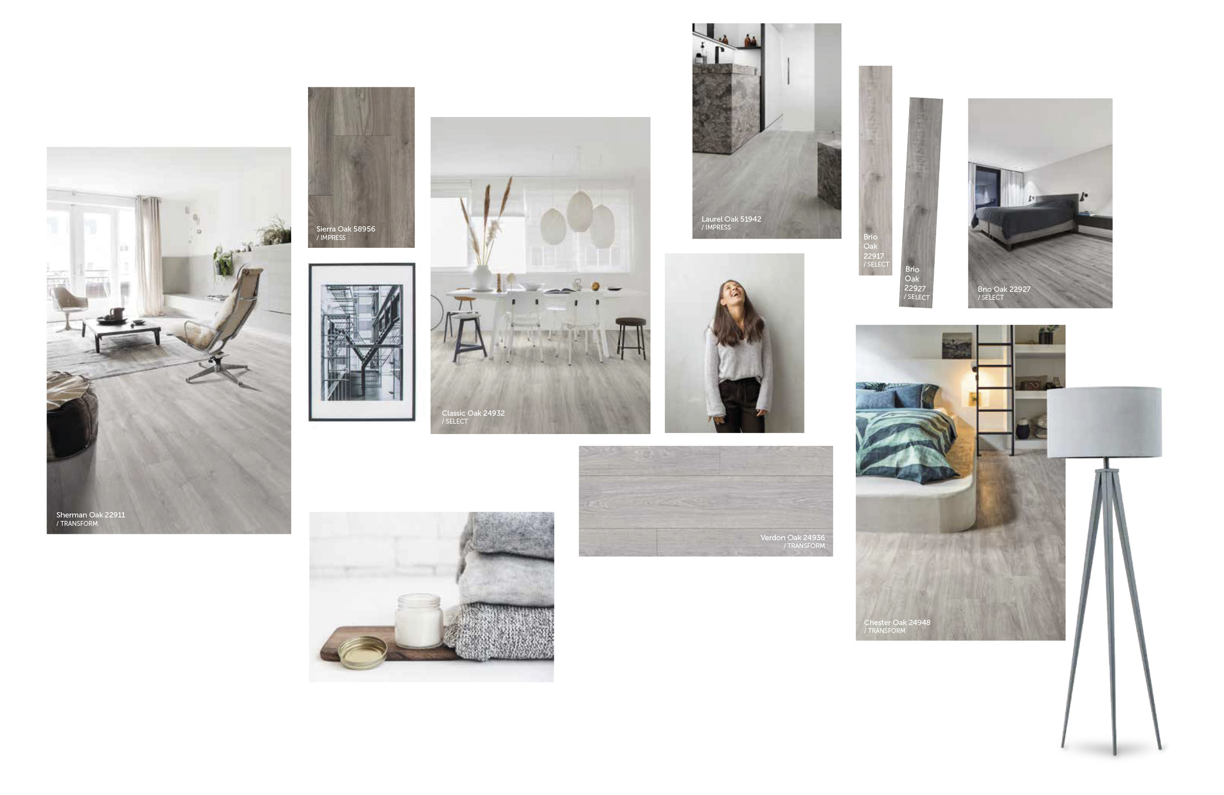 Le gris reste in cette année encore. Cette couleur neutre évoque le calme et la confiance. Les combinaisons sont infinies, d'un gris rafraîchissant à un gris intemporel et sophistiqué. Les nuances de gris remplissent une fonction de soutien pour d'autres éléments de la pièce, qu'il s'agisse d'un meuble design, de plantes décoratives ou d'un accent de couleur vif. Moduleo propose d'innombrables teintes de gris dans sa collection de sols en vinyle de luxe. Chacun d'entre eux apporte systématiquement une harmonie dans votre intérieur, car le gris ne jure jamais avec les autres couleurs. Moduleo sort le grand jeu en matière de style : de l'aspect vieilli du bois patiné à la finesse des motifs de pierre marbrés ou flammés, avec des joints décoratifs pour une finition authentique. Et toujours cette même chaleur et un confort inégalé sous vos pieds.