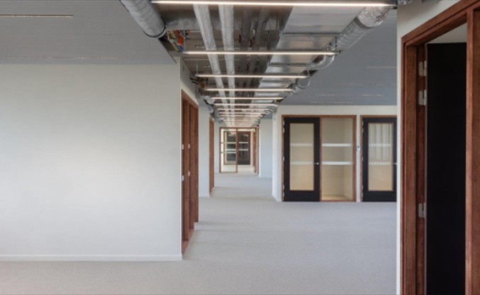 Les interventions ont porté sur l’enveloppe et les installations techniques : vitrage performant, nouvelle isolation, ventilation avec récupération de chaleur, panneaux solaires, récupération des eaux de pluie et pompe à chaleur hybride. Le bâtiment atteint un label EPC C avec 38 % d’énergie renouvelable, une performance supérieure à 96 % des bureaux flamands.