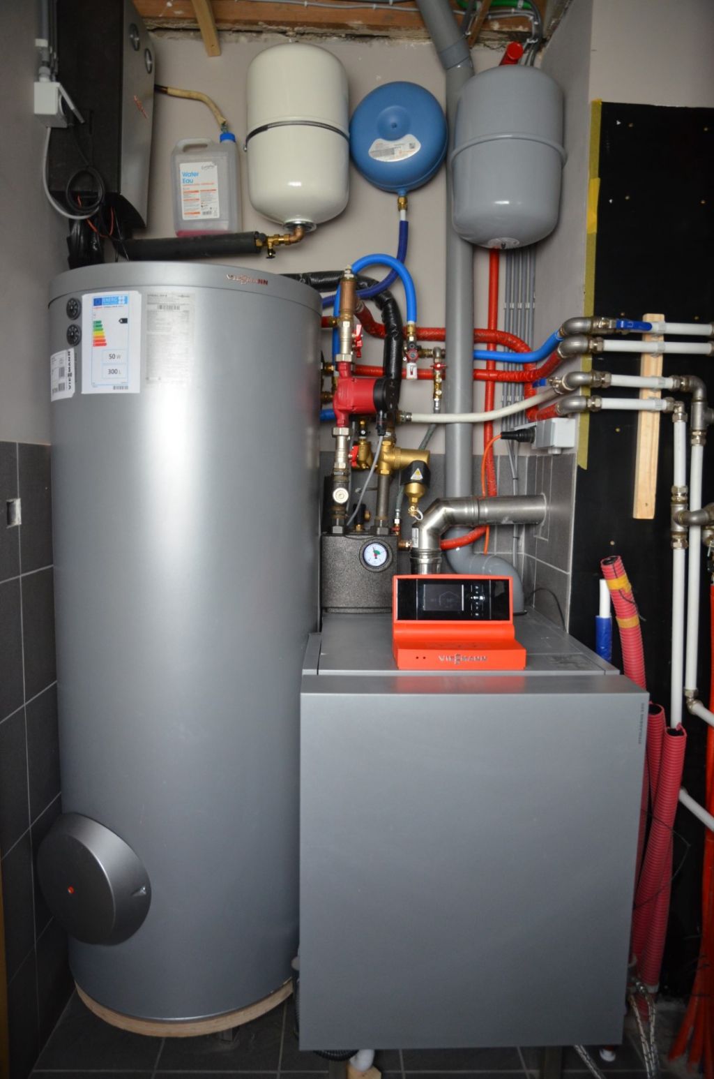La principale difficulté du projet portait sur l’aménagement de l’espace. Convaincu de la qualité du matériel proposé par l’installateur, le jeune couple a accepté l’offre à la condition que tout rentre dans le local étroit prévu à cet effet. « Ce fut pratiquement au millimètre près », poursuit l’installateur avec le sourire. « Malgré l’exiguïté de l’espace (moins de 1,5 m), je suis parvenu à ce que tous les éléments-clés restent parfaitement accessibles pour l’entretien de l’installation. Il a parfois fallu être créatif, mais cela fera gagner un temps précieux en cas de dépannage. »