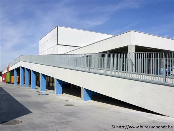Dans la nouvelle concession D’Ieteren à Anderlecht, les concepts habituels de garage et de salle d’exposition ont été remis en question en raison de la transition actuelle et de l’incertitude des évolutions dans le secteur automobile. Un concept de construction flexible a été réalisé et un espace supplémentaire a été prévu dans les colonnes techniques, de sorte que l'on puisse y intervenir à tout moment, de manière simple, en vue d'une extension ou d'une modification. Ce principe est également présent dans tous les espaces techniques.