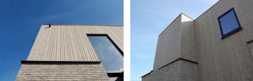 Toute portion de bardage qui ne serait pas exposée de la même manière à ces deux facteurs présentera rapidement une couleur différente allant de la couleur initiale et naturelle du bois à la couleur gris argenté si caractéristique. Etant donné qu’une façade comporte souvent des zones d’ombre (comme sous une corniche, autour des fenêtres ou sous les seuils de fenêtre), un grisaillement homogène est pratiquement utopique.