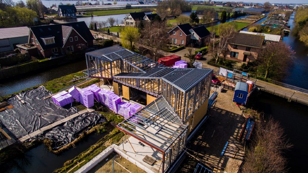 Judy et Fred ont visité Bouwbeurs, un salon de la construction à Utrecht, et ont été immédiatement convaincus par les avantages que présente la construction en ossature métallique de beSteel. Cette technique constructive a rendu possible la construction de leur maison entourée par l’eau du lac Braasemermeer. L’aspect écologique de l’ensemble a été décisif pour les propriétaires qui ont choisi la construction à ossature métallique.