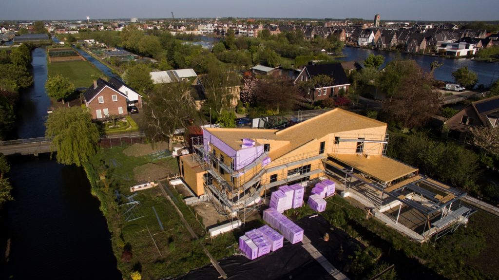 Mais ce lac environnant a aussi créé un défi supplémentaire : la maison a dû être construite au milieu de l’eau. Ses fondations reposent sur 29 poteaux de 16 mètres. Le sol peut donc descendre de 20 à 30 cm tout en gardant la maison stable. « Avec une construction traditionnelle, nous aurions eu besoin de plus de poteaux que le nombre qui a été nécessaire à la réalisation du projet. La construction à ossature métallique a permis d’assurer un ensemble léger », confirme Peter Hurkmans.