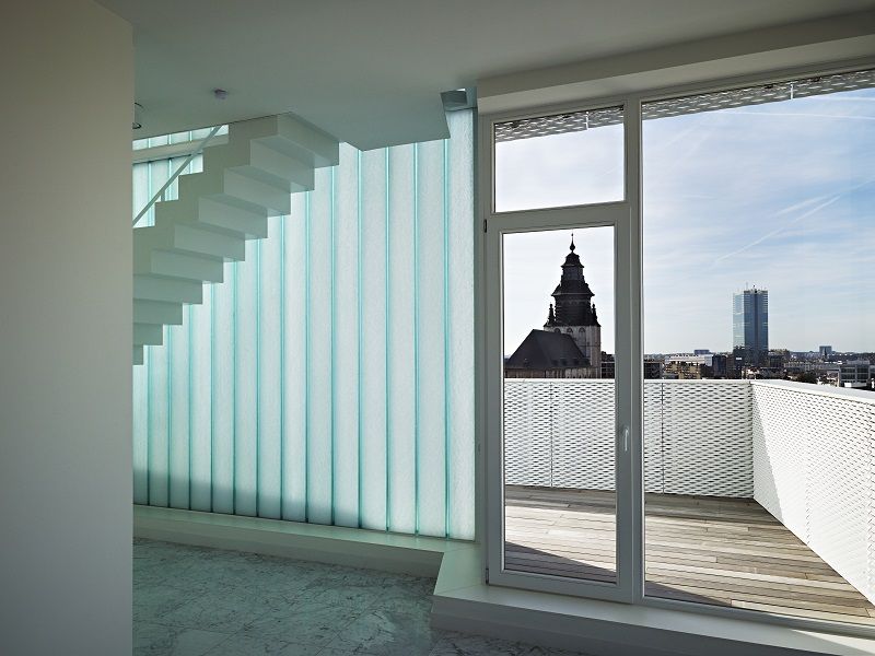 Les espaces se plient et se déplient, se construisent et se déconstruisent, privilégiant le rapport au monde extérieur et à sa lumière changeante à travers de multiples terrasses. De façon organique, les volumes se superposent, développant des étages avec vue sur la ville, pour culminer en nid d'aigle aux deux derniers étages avec un duplex de 300 mètres carrés offrant une vue imprenable sur la ville.