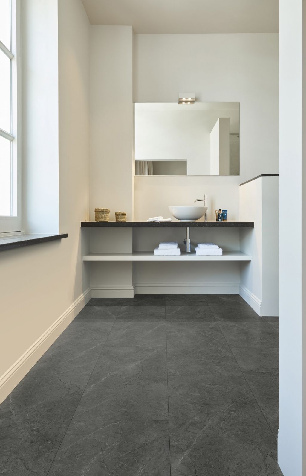 On opte généralement pour des dalles de carrelage dans les pièces humides comme la cuisine et la salle de bains. Toutefois, il n’est pas facile de découper ces dalles notamment en raison de leur grande fragilité. CERATOUCH est un sol dur composé de plusieurs couches qui associe la solidité et l’aspect d’une dalle en céramique à la facilité d’installation d’un sol COREtec. Les sols CERATOUCH sont beaucoup moins fragiles que les dalles en céramique et il est plus facile de les découper sans les casser. Pour la pose, pas besoin de ciment : il n'y a donc pas de temps de séchage à prévoir. Contrairement à un sol en céramique, on peut dès lors marcher immédiatement sur le nouveau sol ! Il n’est en outre pas nécessaire de niveler au préalable le sol ou le support existant. Les sols CERATOUCH possèdent ces qualités grâce à la technologie d’avant-garde CERAGUARD. La couche supérieure en thermoplastique protectrice, résistante aux taches, aux rayures et à l’abrasion offre une résistance aux rayures au moins équivalente à celle d’une dalle en céramique. Le sol est en outre totalement résistant à l’eau et très facile d’entretien.