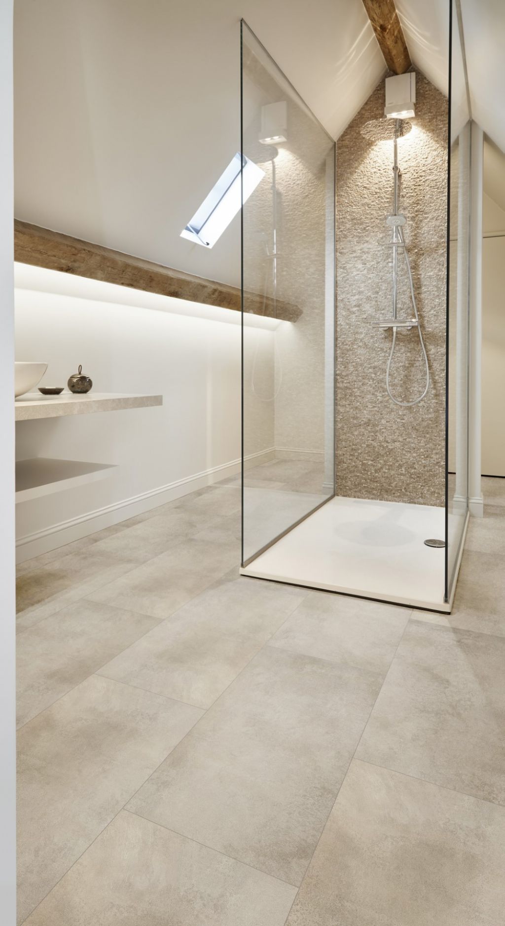 Celui ou celle qui a envie d’un style plus amusant et plus original peut même mélanger les trois formats. Par exemple, des lames dans les coins de la salle de bains ou de la cuisine et des petites ou des grandes dalles au milieu. Si on est en présence d'une cuisine ouverte qui se prolonge dans le salon, on peut opter pour deux décors différents dans les mêmes nuances qui s’harmonisent à la perfection. Il suffit de compléter le tout par des plinthes assorties et des quarts-de-rond dans le même décor que celui du sol !