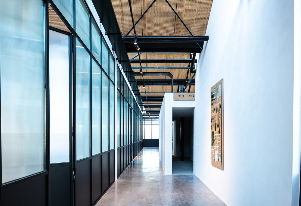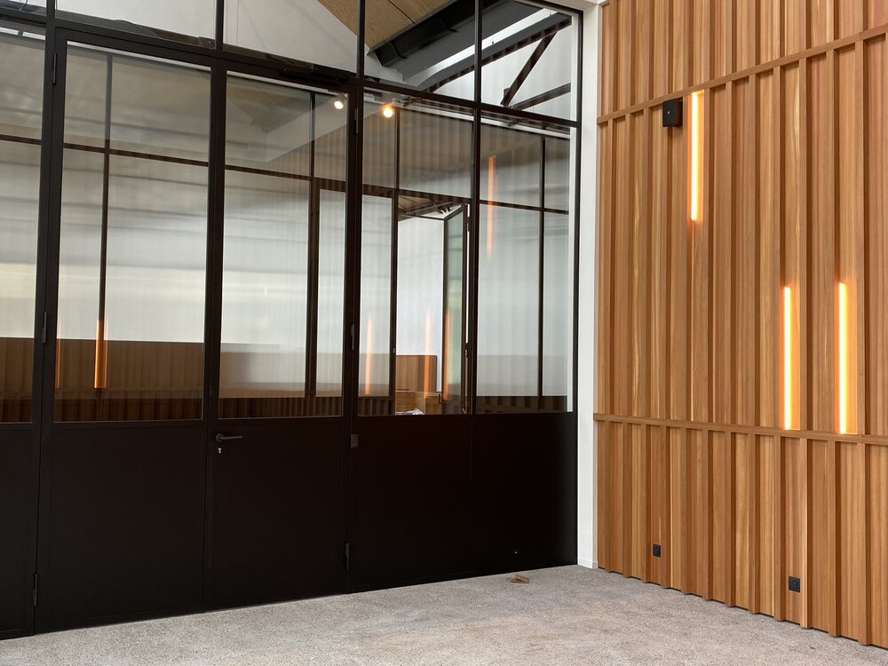 Si la rénovation a mis l’accent sur l’acoustique et l’esthétique, les travaux ont également été réalisés dans le respect de l’ancienne usine. « La structure en acier d’origine a été conservée tandis que la structure du toit a été entièrement rénovée. Nous avons préalablement réalisé une étude approfondie afin de créer l’acoustique recherchée », explique le concepteur, Wolf Goddeeris. Le panneau de toiture Usystem Roof DS Acoustic s’est avéré être la solution idéale. Les panneaux perforés offrent de bonnes performances acoustiques. Ils affichent une résistance au feu REI30 et le pin polonais apporte une finition intérieure du plus bel effet. Cette essence de bois était l’option de finition qui collait le mieux au caractère industriel du bâtiment et à l’éventail de matériaux que nous envisagions pour l’aménagement. La structure de toit classique a été appliquée sur les panneaux. Résultat : une couche d’isolation supplémentaire et une finition étanche.