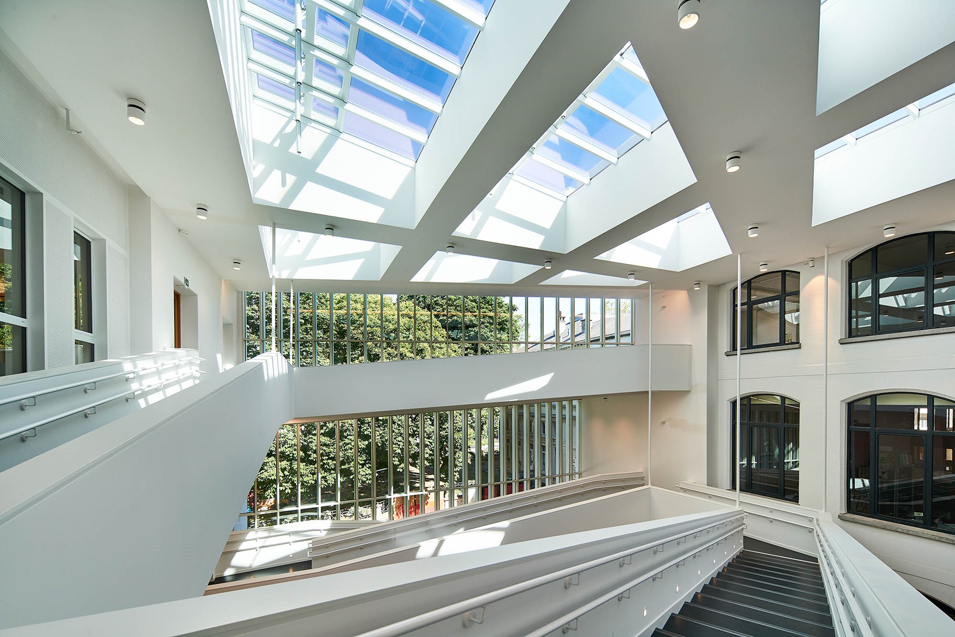 Prévu sur 375 jours, le chantier a duré environ 550 jours, compte tenu des surprises et modifications auxquelles ARTES a dû faire face. Le COVID a notamment entraîné un arrêt complet du chantier pendant le premier confinement. Mais le plus gros imprévu concerne le bâtiment à rénover. « Nous nous sommes rendu compte que plus aucun plancher n’offrait une portance suffisante. Avec à la clé le démontage et le remplacement non prévus de 1800 m2 de planchers. Comme il n’était pas possible de consolider les fondations existantes, nous avons opté refaire les planchers en bois. » Du point de vue énergétique, tout a été pensé pour le confort thermique avec une isolation par l’intérieur d’un bâtiment qui ne l’était pas du tout.