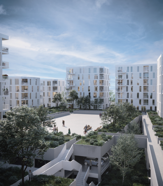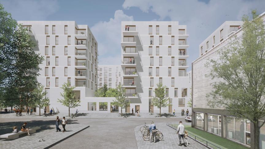 Création de 284 logements sur le square Micha à Droixhe, en face des futures halles des foires (Atelier Chora)