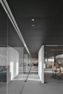 Les grilles de ventilation visibles ou non de la gamme kreon Ceiling Solutions constituent un système de ventilation élégant et alimentent le bureau en air frais. Le refroidissement et le chauffage sont répartis uniformément sur toute la surface, sans courants d’air ni bruits. En été, le plafond rafraichissant absorbe l’excès de chaleur et la pièce est refroidie par rayonnement. En hiver, le plafond diffuse directement la chaleur vers les personnes et les surfaces. Les systèmes audio, munis de haut-parleurs high-tech, créent à leur tour une expérience audio optimale sans compromettre l’esthétique visuelle de la pièce. Grâce à l'intégration parfaite des appareils d’éclairage, les employés bénéficient d'un éclairage approprié, combiné à une couleur et un rendu de lumière adapté pour travailler confortablement.