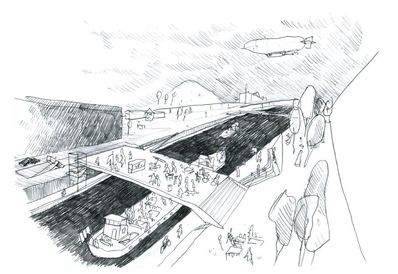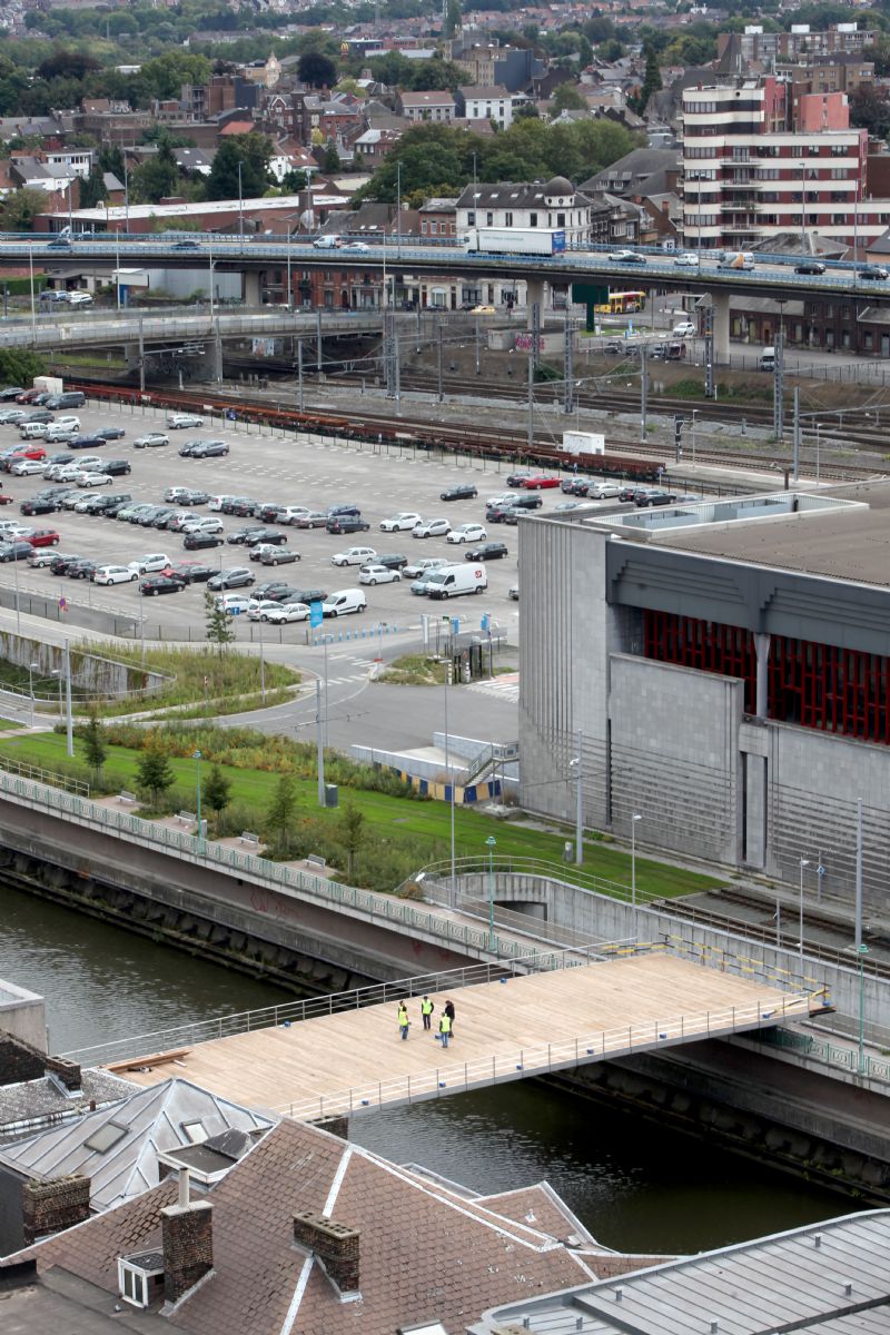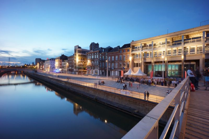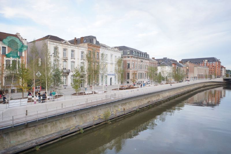 Avec l’aménagement des quais, les architectes ont souhaité revaloriser les éléments existants de la ville et de son environnement. Le rapport à la Sambre est particulièrement remodelé. L’accès à l’eau et les vues vers la rivière sont considérablement améliorés grâce à la création de chemins de promenade, d’escaliers et des élargissements du chemin de halage en poches urbaines aménagées et végétalisées. La « placerelle » franchissant la Sambre est conçue comme une petite place suspendue. Ses généreuses dimensions permettent l’organisation d’événements publics juste au-dessus de l’eau. Enfin, la clarté caractérise le nouveau visage du quartier. Le béton blanc, les plantations de bouleaux et la mise en lumière des bâtiments proposent un nouveau regard sur la ville.