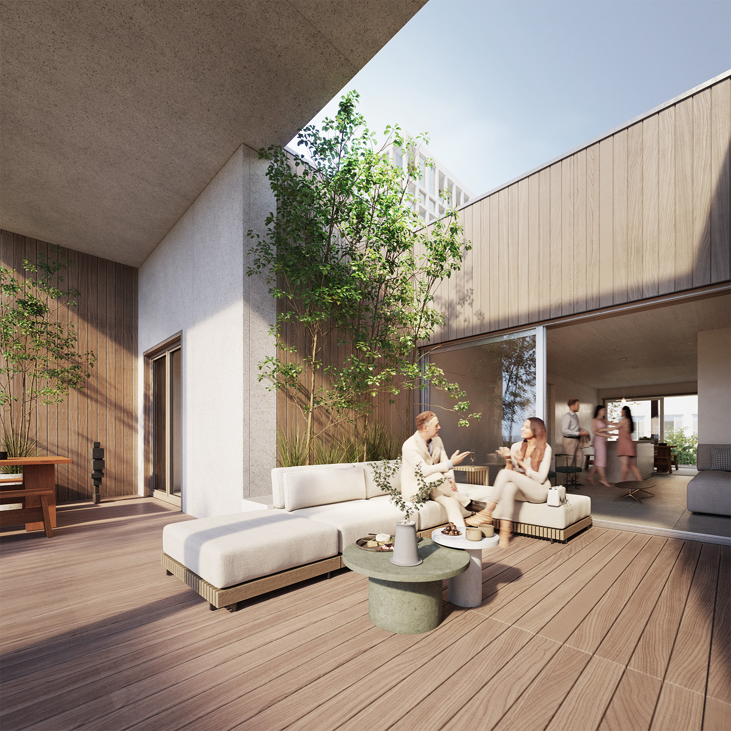 "Nous ne voulons pas seulement construire un bel immeuble, nous voulons créer une partie agréable de la ville", a déclaré David Chipperfield à Dezeen "Nous sommes ravis que Triple Living nous ait contactés pour apporter notre contribution au quartier Nieuw Zuid d'Anvers", a-t-il poursuivi. "Grâce au plan directeur de Paola Viganò, nous pouvons contribuer à la création d'un quartier frais et dynamique doté d'espaces publics agréables. Le verger, qui sera ouvert à tous, est un aspect important de ce projet".