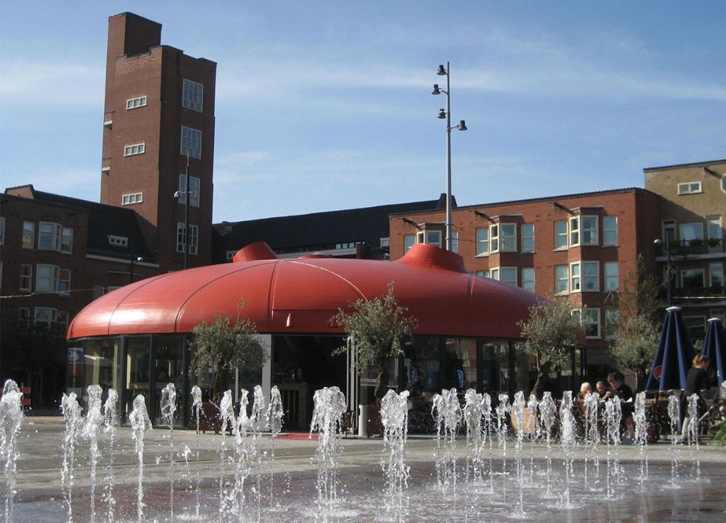 Une charpente en bois constitue la base de la forme elliptique du toit de ce pavillon d’accueil situé sur la Mercatorplein à Amsterdam. Trois verrières en ressortent et font entrer la lumière du jour par le haut. La conception, réalisée par le bureau SeARCH Architecten, symbolise la richesse des cultures vivant dans cet arrondissement amstellodamois. Le remarquable revêtement de toit rouge a été obtenu par une finition avec Triflex Cryl Finish 205. L’utilisation de Triflex ProTect a rendu le toit imperméable de manière durable et a permis de créer une surface lisse et sans joint. Le pavillon est l’un des hauts lieux d’Amsterdam depuis 2010.