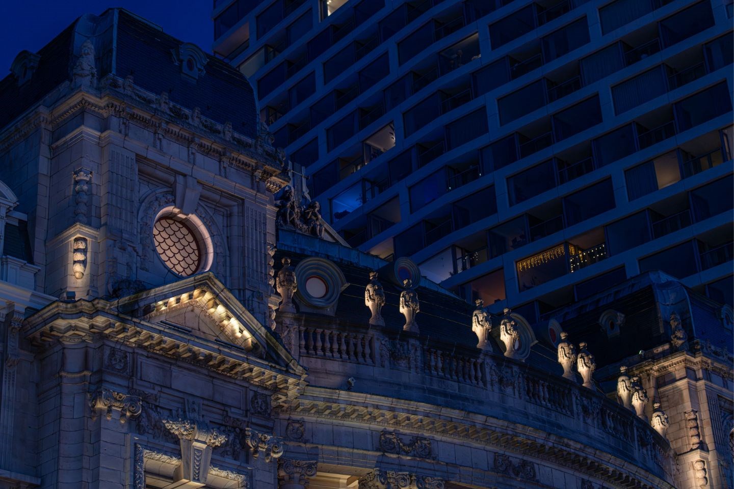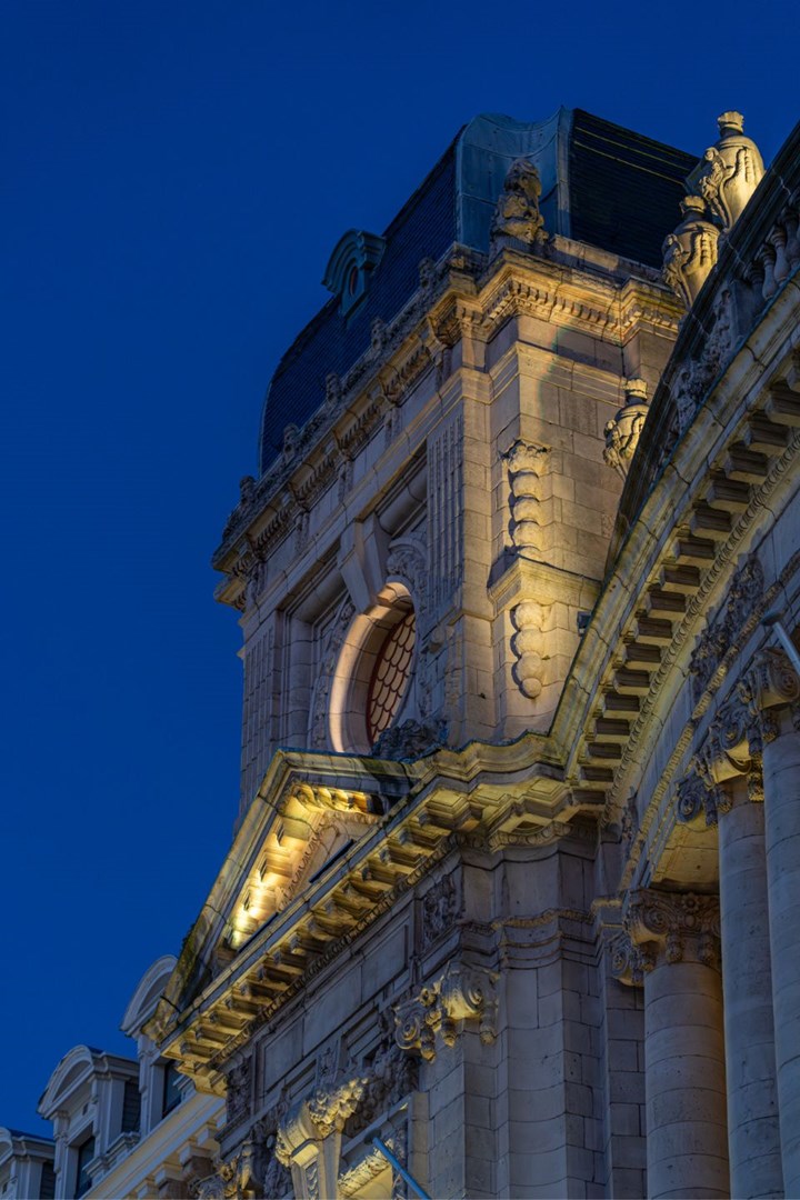 Afin de mettre en valeur toute la richesse de ce bâtiment de style néobaroque, la création du concept de cette mise en lumière a été confiée au bureau d’architecture Radiance 35. Suite à un concours, nos luminaires SCULP ont été sélectionnés pour lui donner vie.