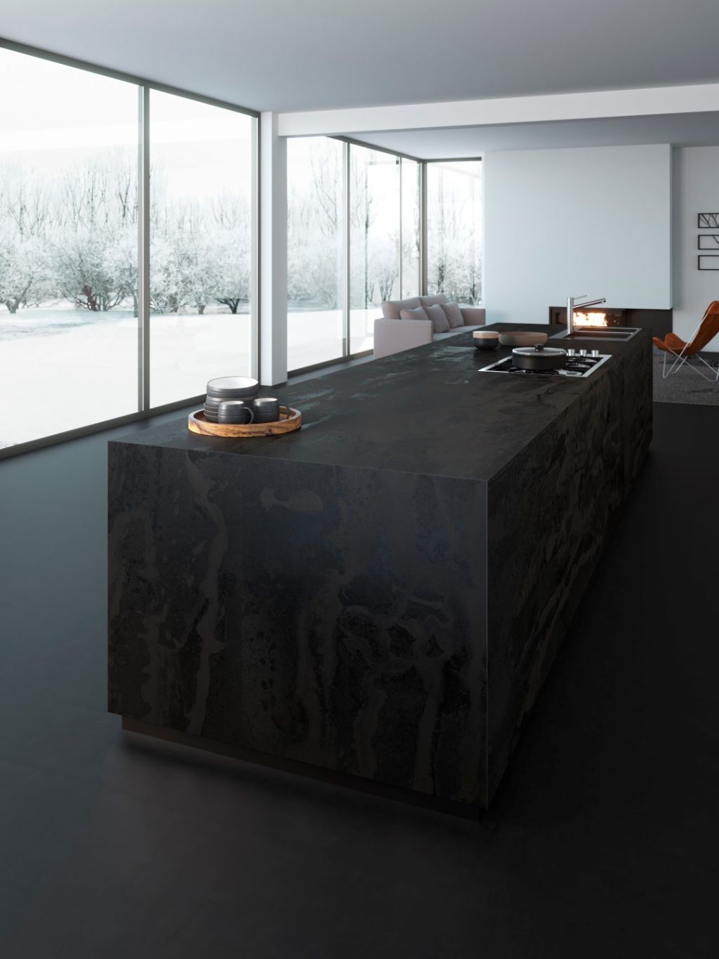 Dekton Industrial présente une finition mate unique qui fait encore mieux ressortir le caractère prononcé de ces créations. En fonction de l’éclairage, les matériaux apparaissent dans différentes palettes de couleurs. Une touche finale spectaculaire.