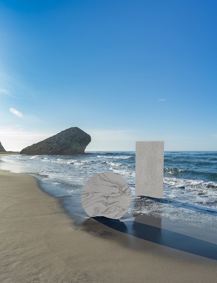 Le travail de Patternity fait surtout la part belle aux éléments naturels. Se profilant résolument comme un studio créatif durable, ses fondatrices ont immédiatement su quel élément choisir comme fer de lance de leur collaboration avec Dekton®. Pour le duo londonien, Liquid est l’expression ultime du naturel : des lignes fluides et dynamiques, inspirées de l’eau dans toutes ses formes et tous ses états. L’un des motifs reflète l’océan, l’autre se greffe aux courbes sinueuses du liquide, et le troisième puise dans la science et l’alchimie. Résultat : 3 motifs subtilement marbrés, entre blanc nacré et noir profond.