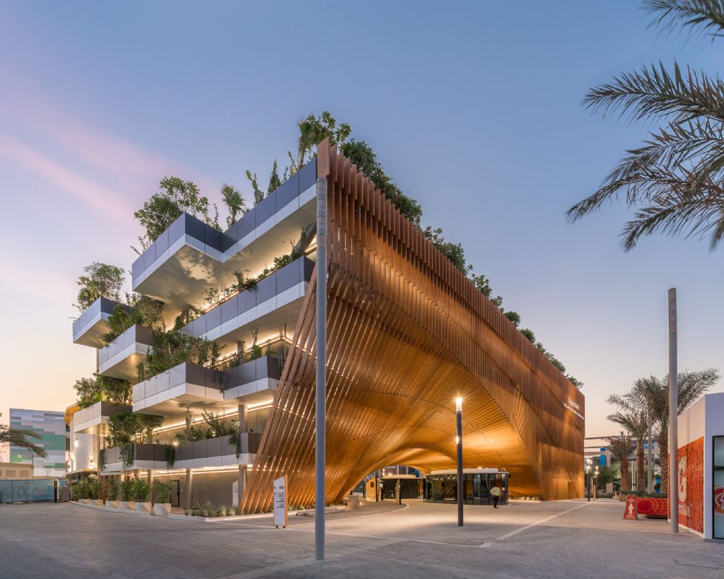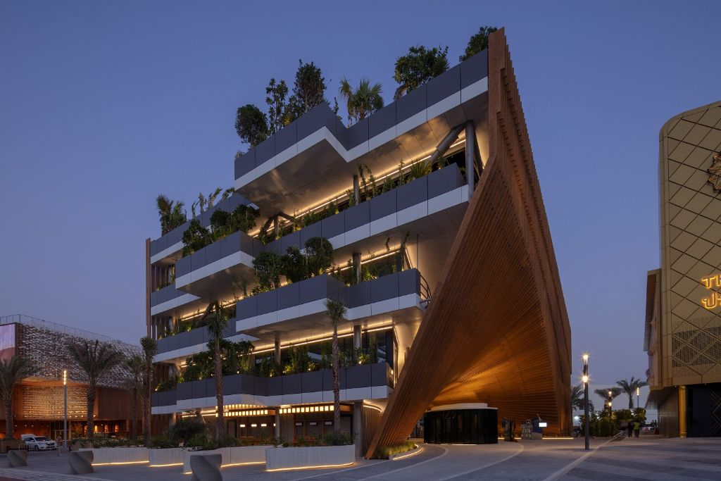 The Green Arch est un chef-d'oeuvre de technologie et d'architecture. En concevant le bâtiment comme une arche, il invite, rassemble et crée un sentiment d'appartenance, une approche des plus pertinentes à l'heure actuelle. Des terrasses verdoyantes renforcent l’orientation durable du pavillon belge.