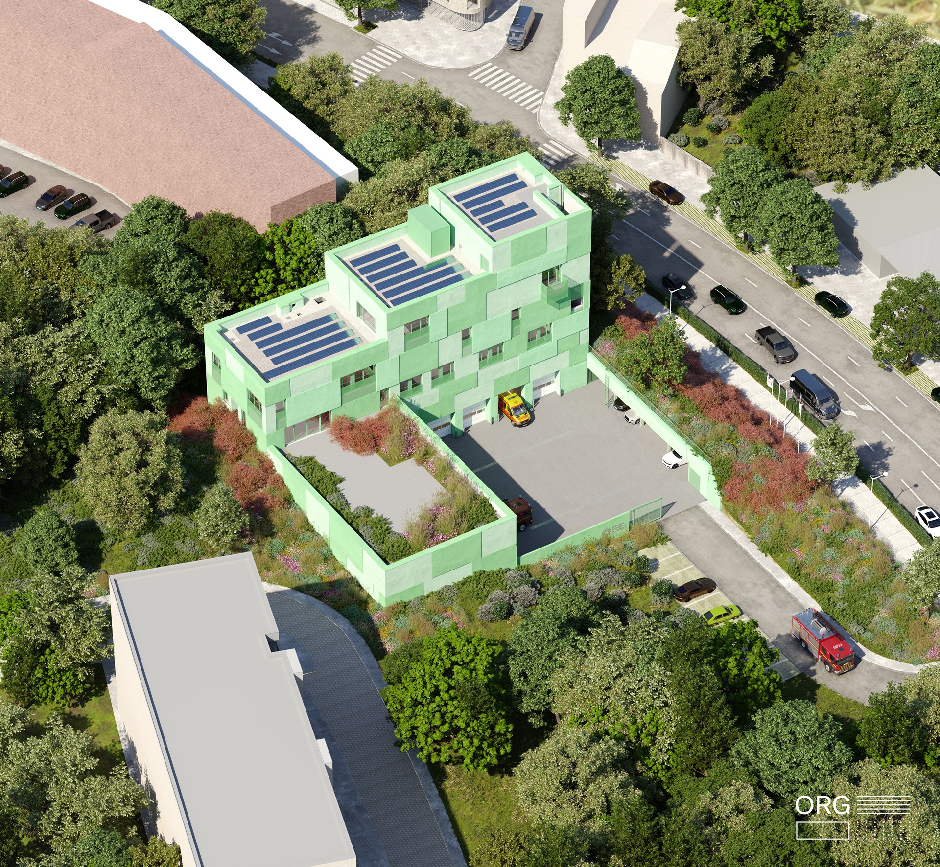 Equipé de panneaux solaires et d’une pompe à chaleur, le bâtiment sera économe en énergie. Les toitures seront végétalisées et des plantes indigènes nécessitant peu d’entretien borderont le bâtiment, améliorant ainsi la biodiversité sur le site. L’eau de pluie alimentera l’arrosage des plantes et les eaux de lavage des véhicules seront filtrées avant d’être rejetées à l’égout.
