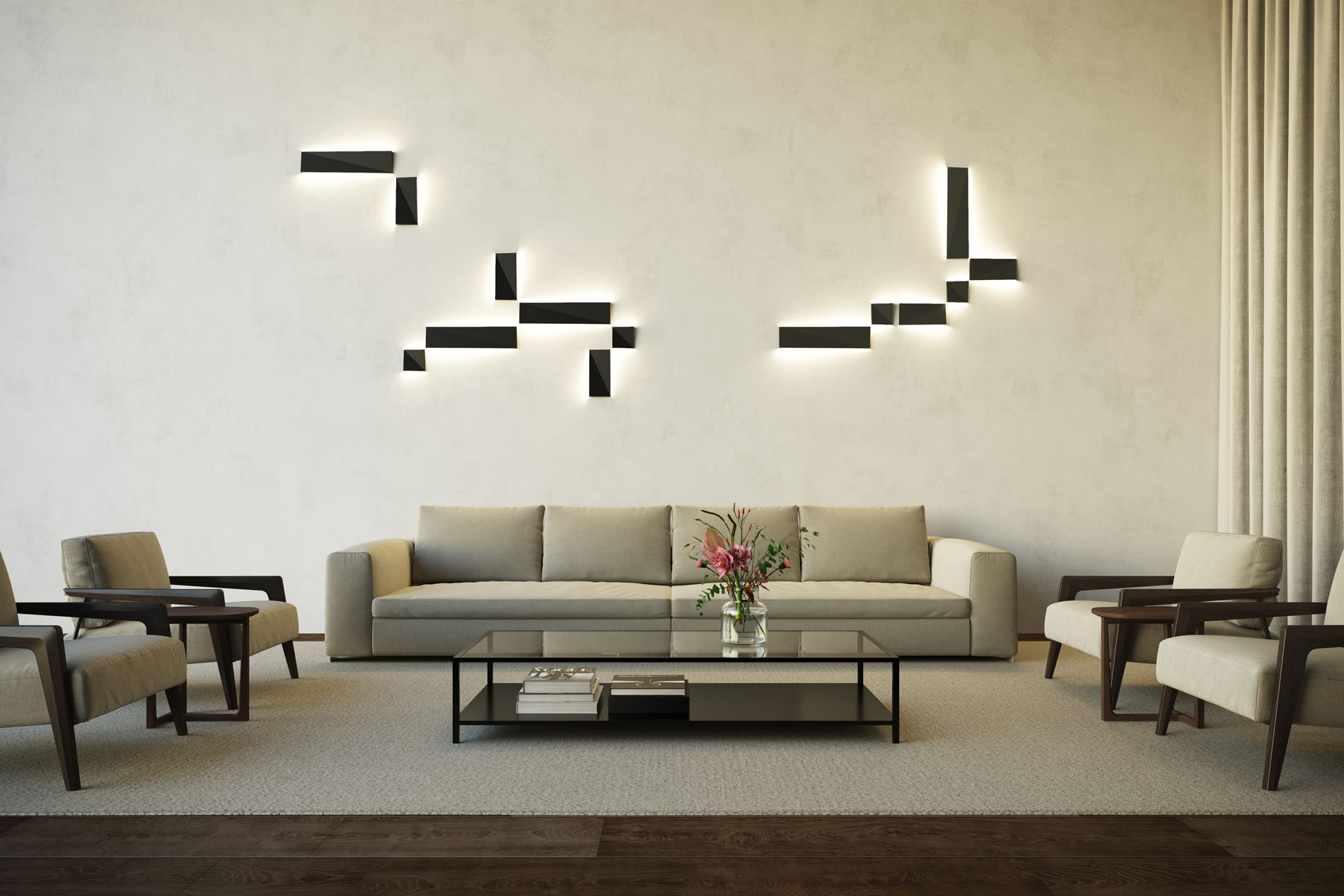 Dans sa finition blanche, Dent confère une simplicité subtile et sophistiquée à la pièce. En noir, Dent peut être utilisé pour une décoration sophistiquée. Grâce à leur installation à plat sur le mur, les taches de couleur sont clairement visibles et l’effet recherché est parfaitement mis en valeur.