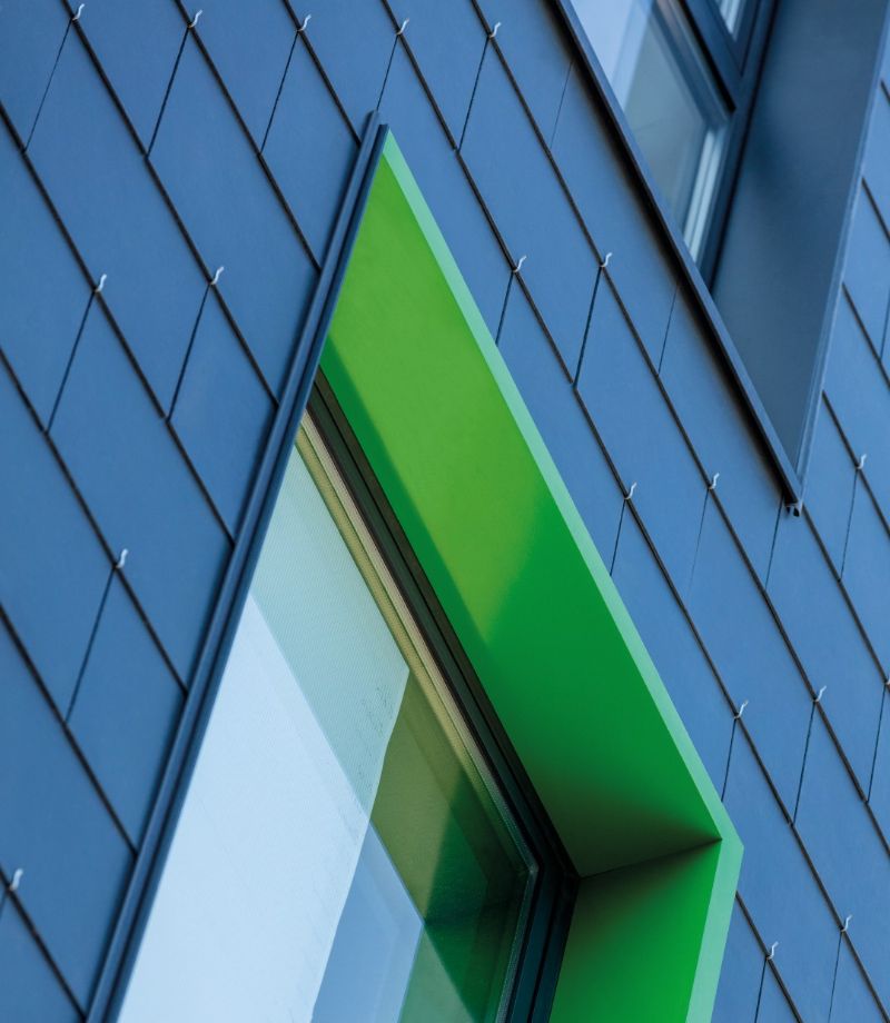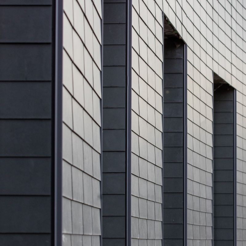 Les ardoises en fibres-ciment sont un matériau intéressant pour tout projet, petit ou grand. Pas étonnant qu'elles soient de plus en plus utilisées. Une vaste palette de coloris, la diversité des modèles et les différentes méthodes de pose permettent de créer des effets architecturaux tant sur le toit que sur la façade. La légèreté des ardoises permet de recouvrir la façade sans renforcer les fondations. De plus, la pose d'ardoises ne prend pas beaucoup de profondeur, ce qui permet de garder assez d'espace pour isoler idéalement la façade. On peut donc prévoir une épaisseur d'isolant suffisante pour répondre aux normes NZEB, sans pour autant déroger à l'alignement. En rénovation, pas de démolition ni perte de place, l'habitation reste habitable pendant les travaux.