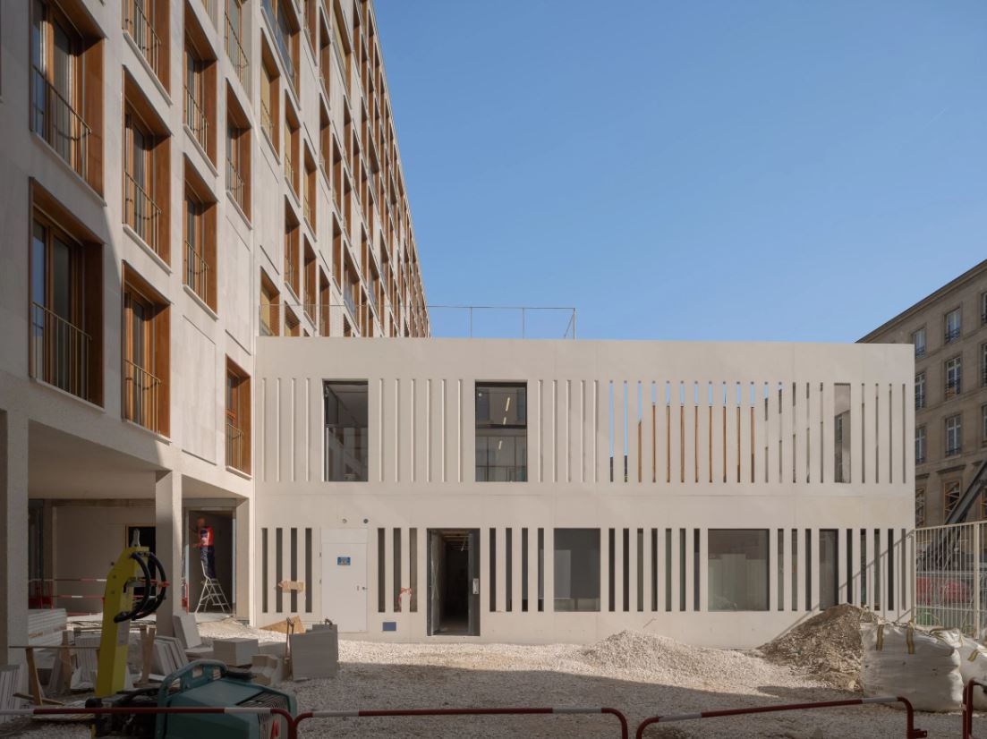 Les firmes françaises François Brugel Architectes Associés, H2o Architectes et Antoine Regnault Architecture ont été chargées de convertir ces espaces de bureaux en 254 unités de logement social. Leur mission incluait également la création d'un gymnase et d'une maternelle, enrichissant ainsi les infrastructures disponibles pour les résidents et la communauté environnante.