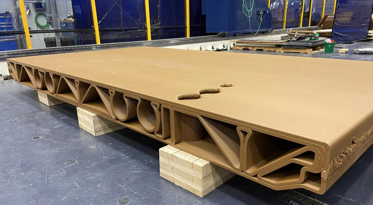 La résistance du panneau est non seulement due à la combinaison des matériaux, mais aussi à sa forme géométrique, qui permet de répartir les charges sur les bords extérieurs, là où il est supporté par la structure en acier du bâtiment. Cette conception innovante permet d'exploiter pleinement les avantages de la fabrication additive.