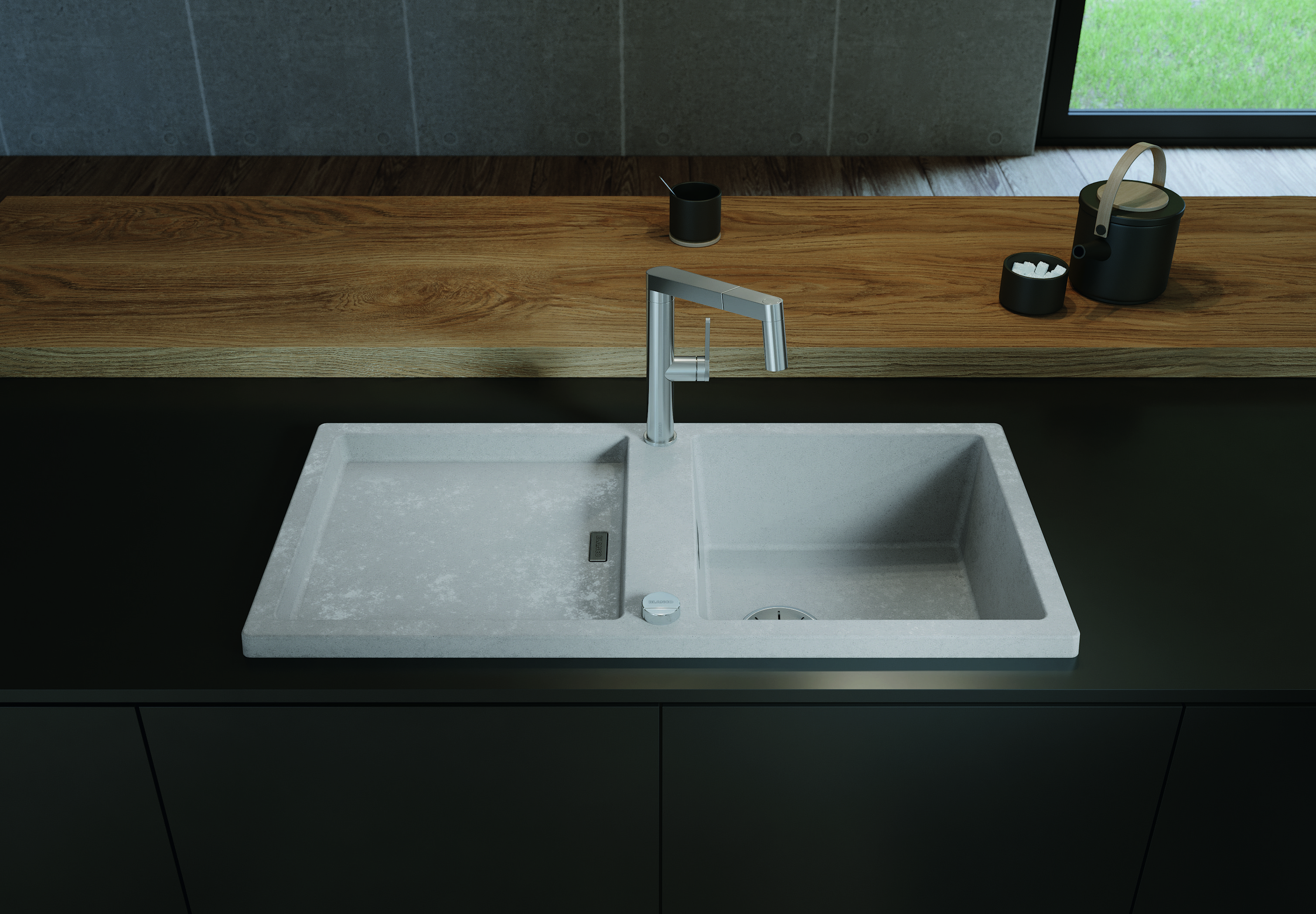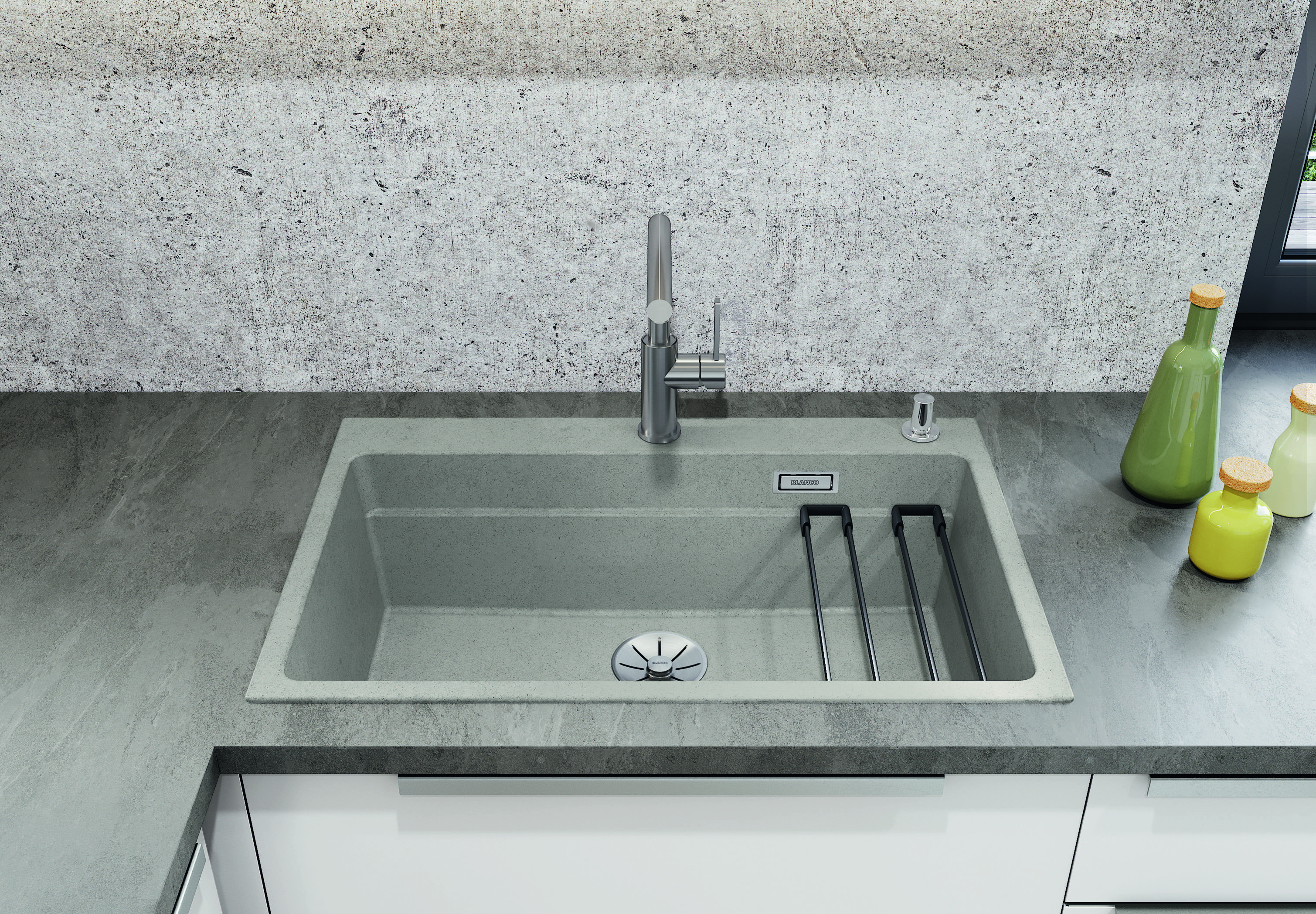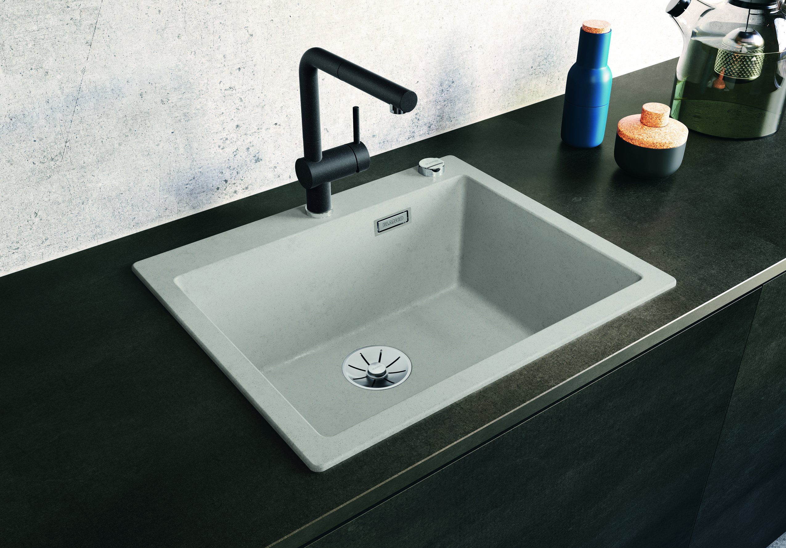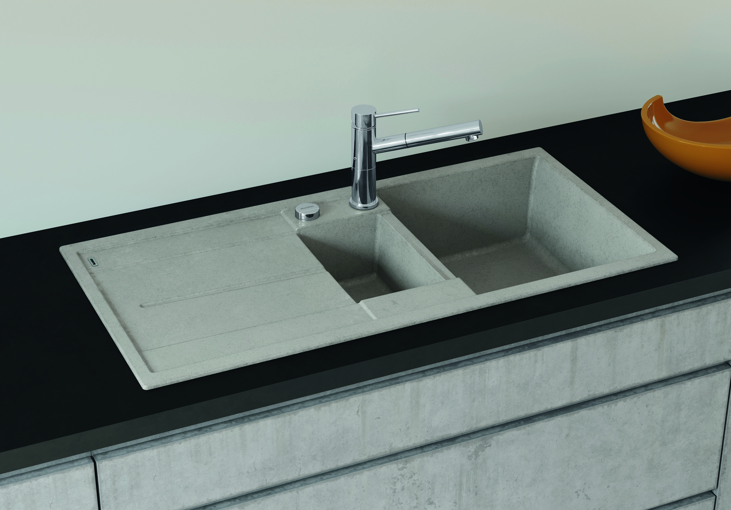 BLANCO a su lier l'aspect brut et authentique du béton à son matériau composite durable Silgranit® PuraDur®. Cela a permis de créer des éviers solides, résistants aux griffes (80% de granit dur), à surface lisse (20% d'acrylique) pour plus d'hygiène, de confort et une facilité d'entretien. La couleur béton, très tendance, s'adapte parfaitement aux nombreuses combinaisons gris-brun dans les cuisines actuelles. La couleur peut servir à attirer le regard, mais aussi à créer un contraste.