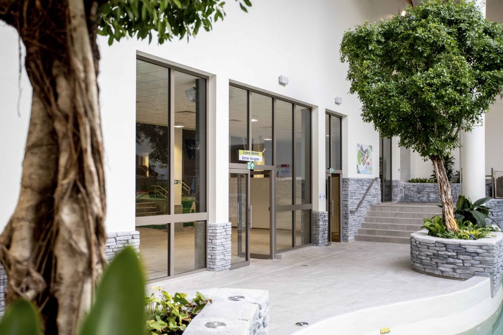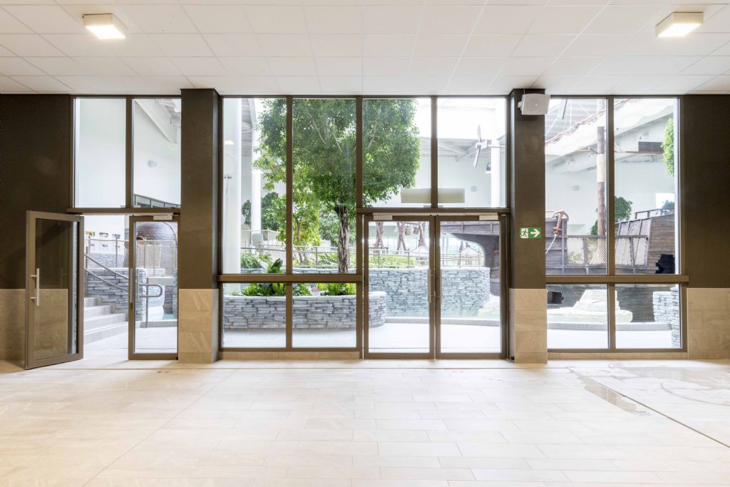 Meyvaert a installé les menuiseries coupe-feu autour de la zone de récréation. Nous avons proposé des parois vitrées Meyvaert Classic FFR avec portes Meyvaert Classic SWD intégrées, car cette série est idéale pour les environnements hautement corrosifs tels que les piscines.