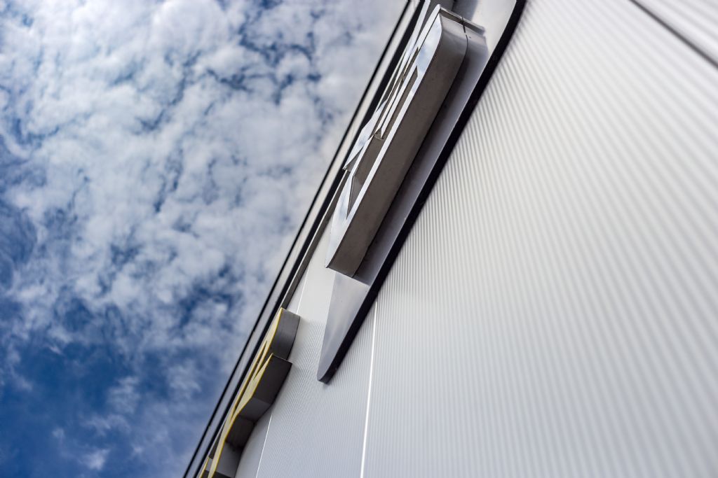 Grâce à son montage en fixations cachées, le panneau offre une beauté architecturale au showroom d'Oudenburg. De plus, le parement extérieur micronervuré rythme les façades du bâtiment.
