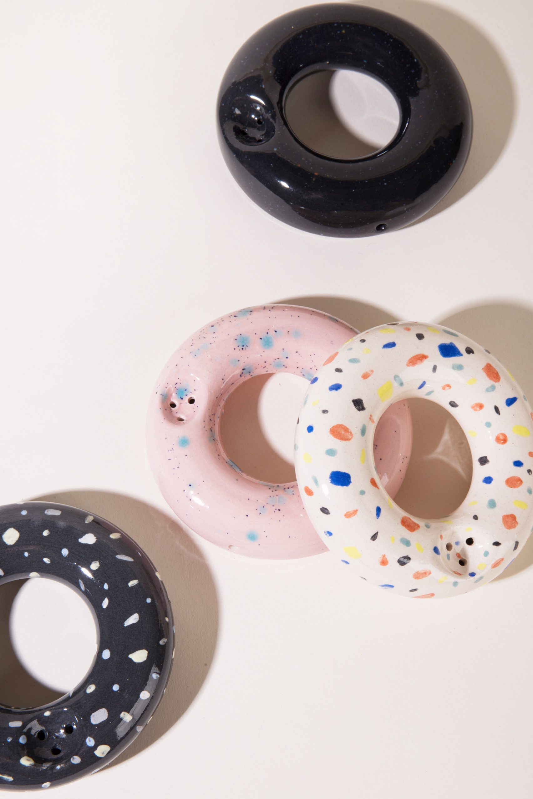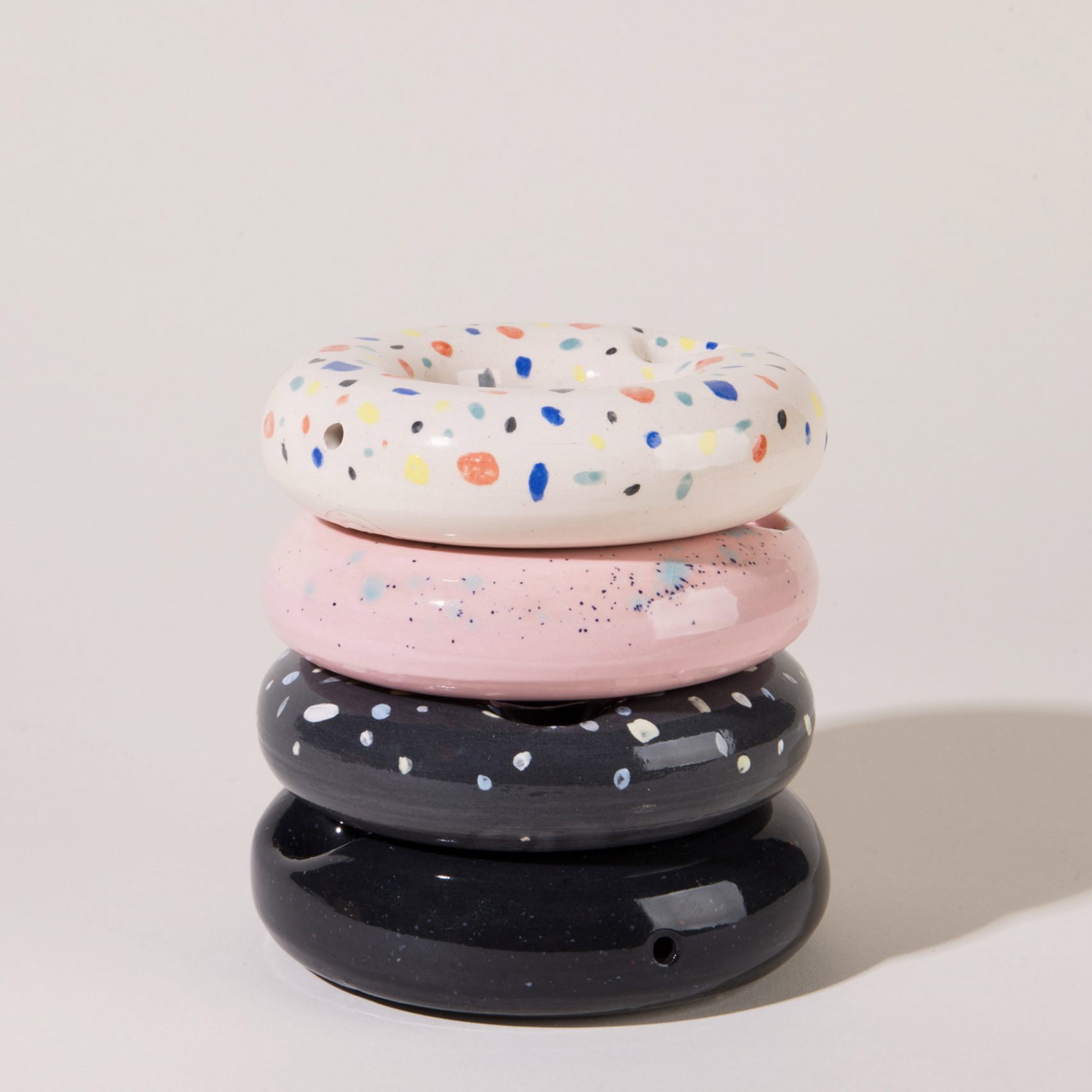 John Quick, un étudiant en art, a créé une collection de pipes à cannabis en forme de donuts, recouvertes d'un émail en céramique ressemblant à du glaçage ! La collection Donut Pipes est fabriquée à la main par Quick, qui étudie au Flagler College de Saint Augustine.