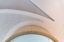 Les panneaux de plafond du type ‘Hook-on’ sont également équipés de registres en cuivre pressés dans des profils à conduction thermique en aluminium. « Afin d’augmenter la puissance à délivrer, la machine de façonnage des méandres a été adaptée pour réduire l’écart entre les tubes aux fins d’intégration dans les cassettes métalliques 800 mm de large. Au total, nous avons utilisé environ 750 panneaux différents, dont environ 80 pièces de forme trapézoïdale. »