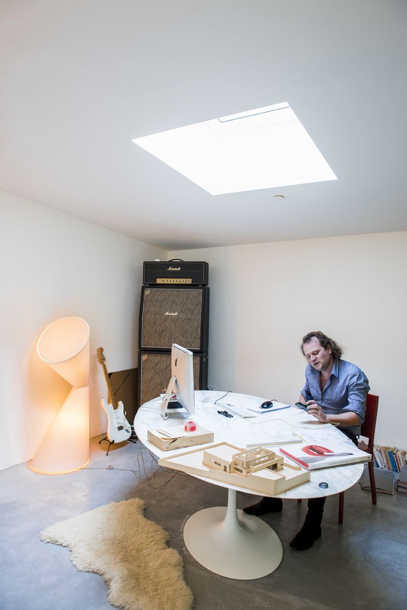 Un quart de queue Gaveau dans le living. Un mur d’amplis Marshall au fond du bureau. Deux guitares, un clavier et au-dessus de la rangée de livres consacrés à l’histoire du rock, un portrait de Bob Dylan qui ressemble étrangement à Swann, l’ainé de la famille. Chez les Bruckmann, l’art occupe une grande place. Et la musique avant toute chose. Une harmonie au diapason de leur maison lumineuse.