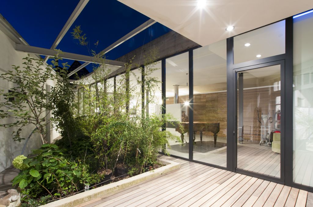 La famille Bruckmann habite dans un lieu unique : un rectangle de bois et de verre, posé entre les murs d’un ancien atelier, au cœur d’un village alsacien. Les immenses baies vitrées et l’ouverture du toit en font un jardin de lumière, où les frontières entre extérieur et intérieur s’effacent. Un projet que ce couple d’architectes a conçu depuis les fondations jusqu’aux finitions.