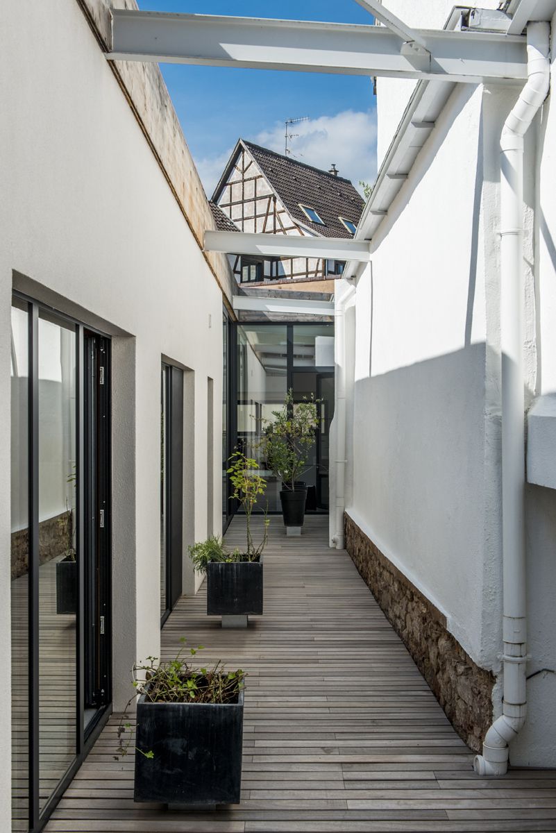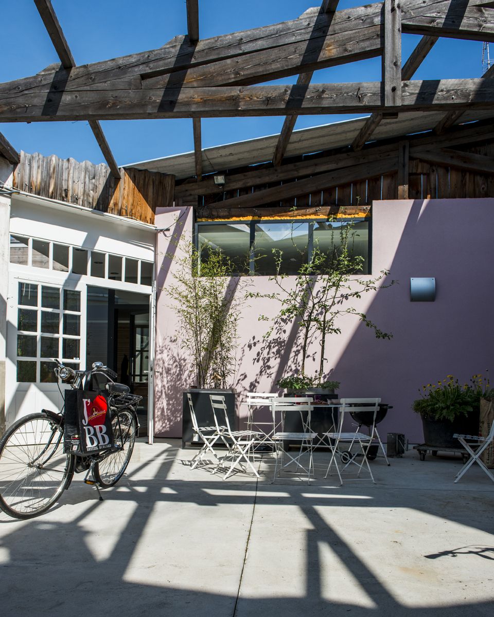 « Depuis plusieurs années, je cherchais un lieu à part », raconte Véronique Bruckmann. « J’ai fini par dénicher une ancienne menuiserie, en plein centre de Molsheim. C’était un grand entrepôt biscornu, laissé à l’abandon. Quand nous sommes entrés la première fois, il y avait des algues sur le sol… Mais le potentiel était là. » Avec son mari, Joël, ils ont imaginé une construction qui tirerait parti de cet espace. Un vrai coup de génie. Pour le commun des mortels, l’endroit semblait inhabitable.