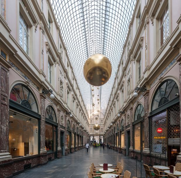 Situées au coeur de Bruxelles, les Galeries Royales Saint-Hubert dessinées par le jeune architecte Jean-Pierre Cluysenaar furent inaugurées en 1847 par le roi Léopold I. Le passage monumental rehaussé d’une coupole en verre (une prouesse technique !) héberge depuis plus de 150 ans déjà boutiques de luxe, cafés et appartements. La vie culturelle a elle aussi toujours été présente dans les galeries. Au numéro 32, les revues du théâtre royal des galeries continuent d’attirer un public nombreux.